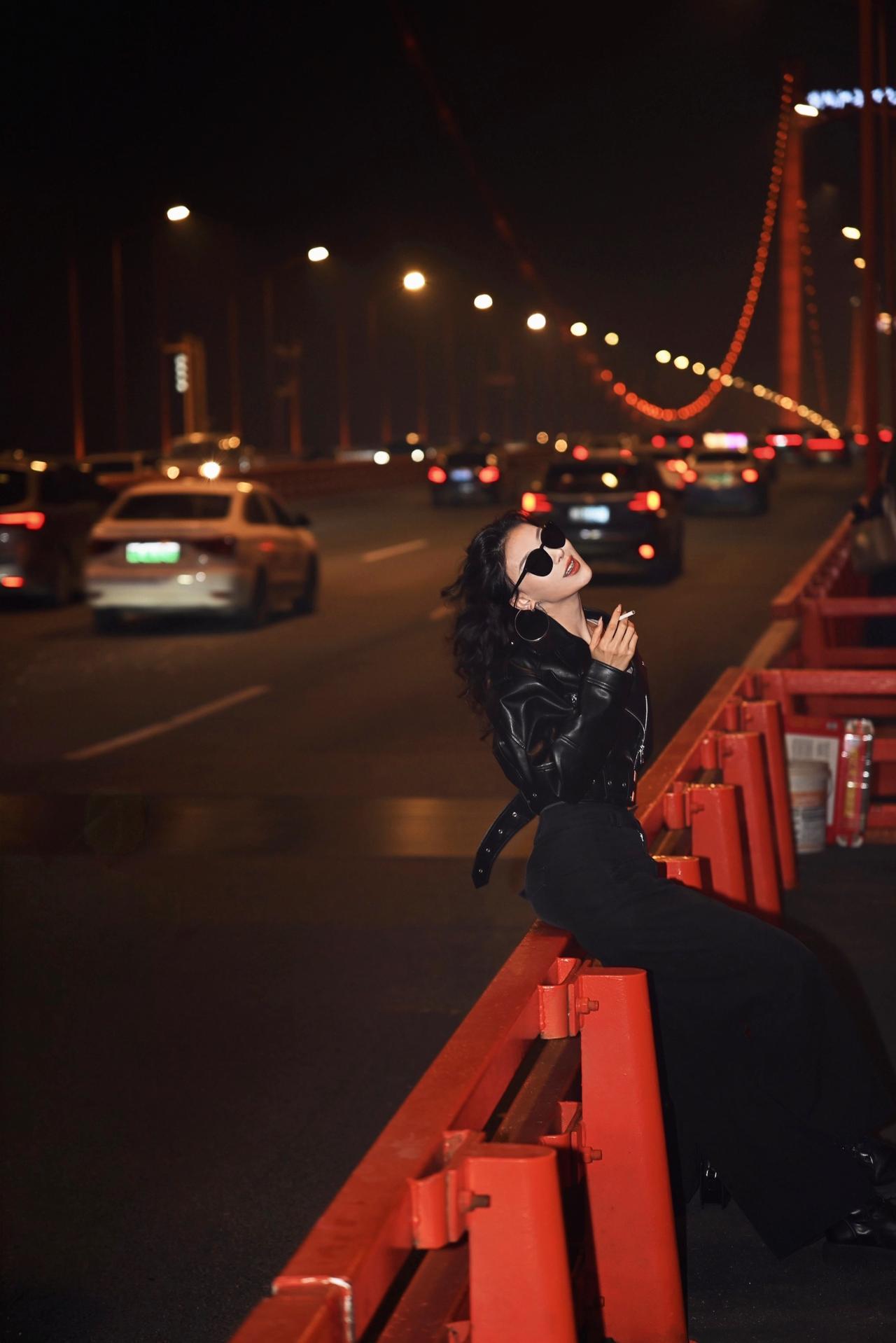 尼康街拍 | 被欺负了?姐去帮你出气!长江大桥夜景太好拍了,模特还是全自动,只用酷酷按快门构图就行🥰🥰 📷:尼康z30 ✨:神牛v480 镜头:561.7 摄影:酷酷的我🤓 快和你的模特约起吧😎等待你们的返图🥺 鹦鹉洲长江大桥夜景 拽姐拽姐穿搭 互勉约拍