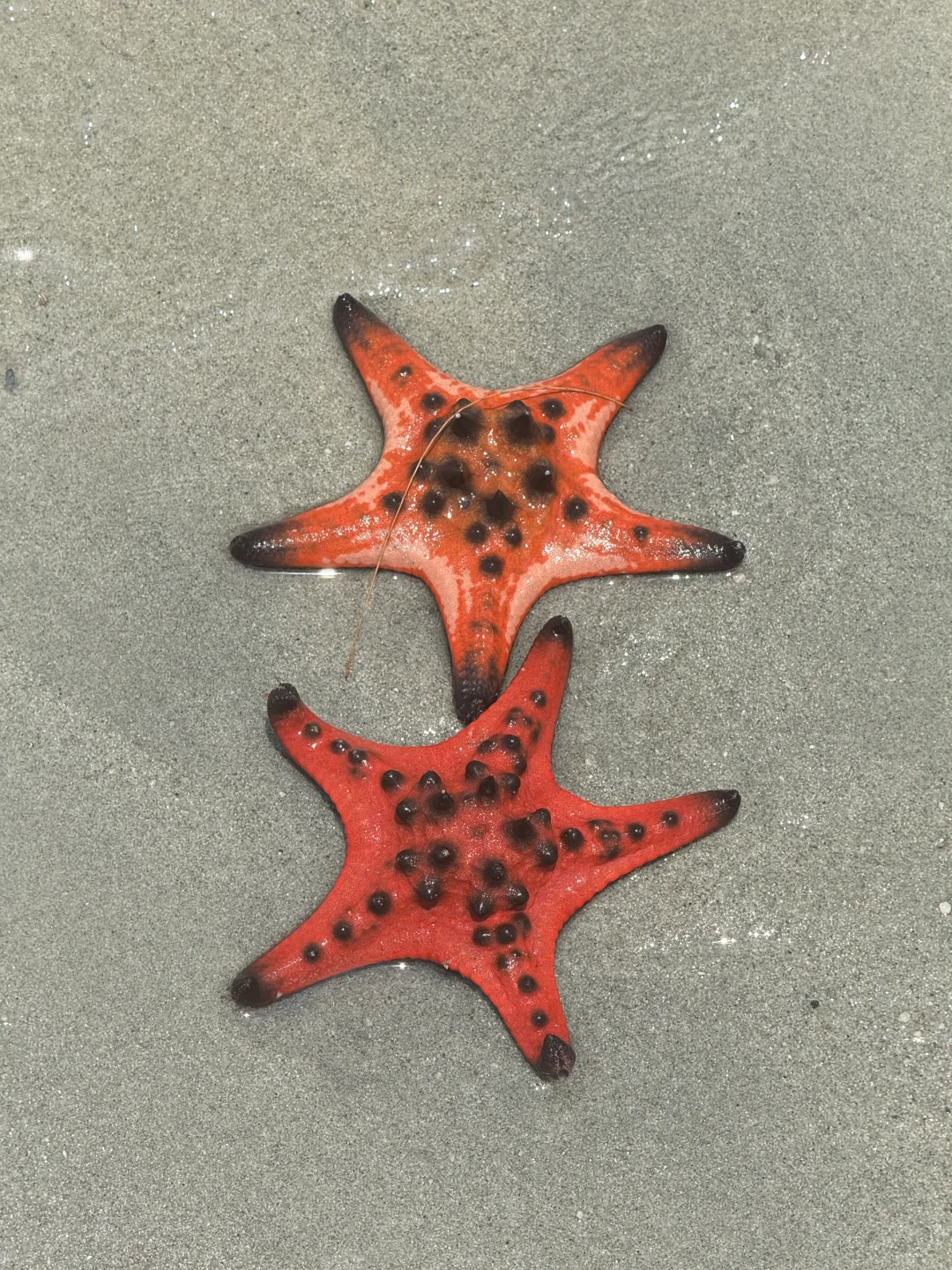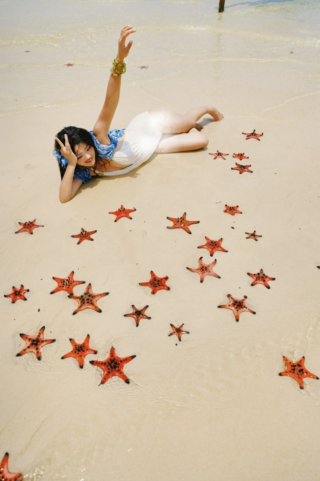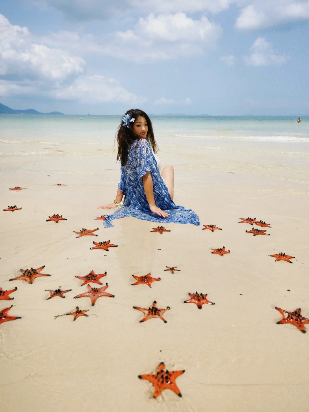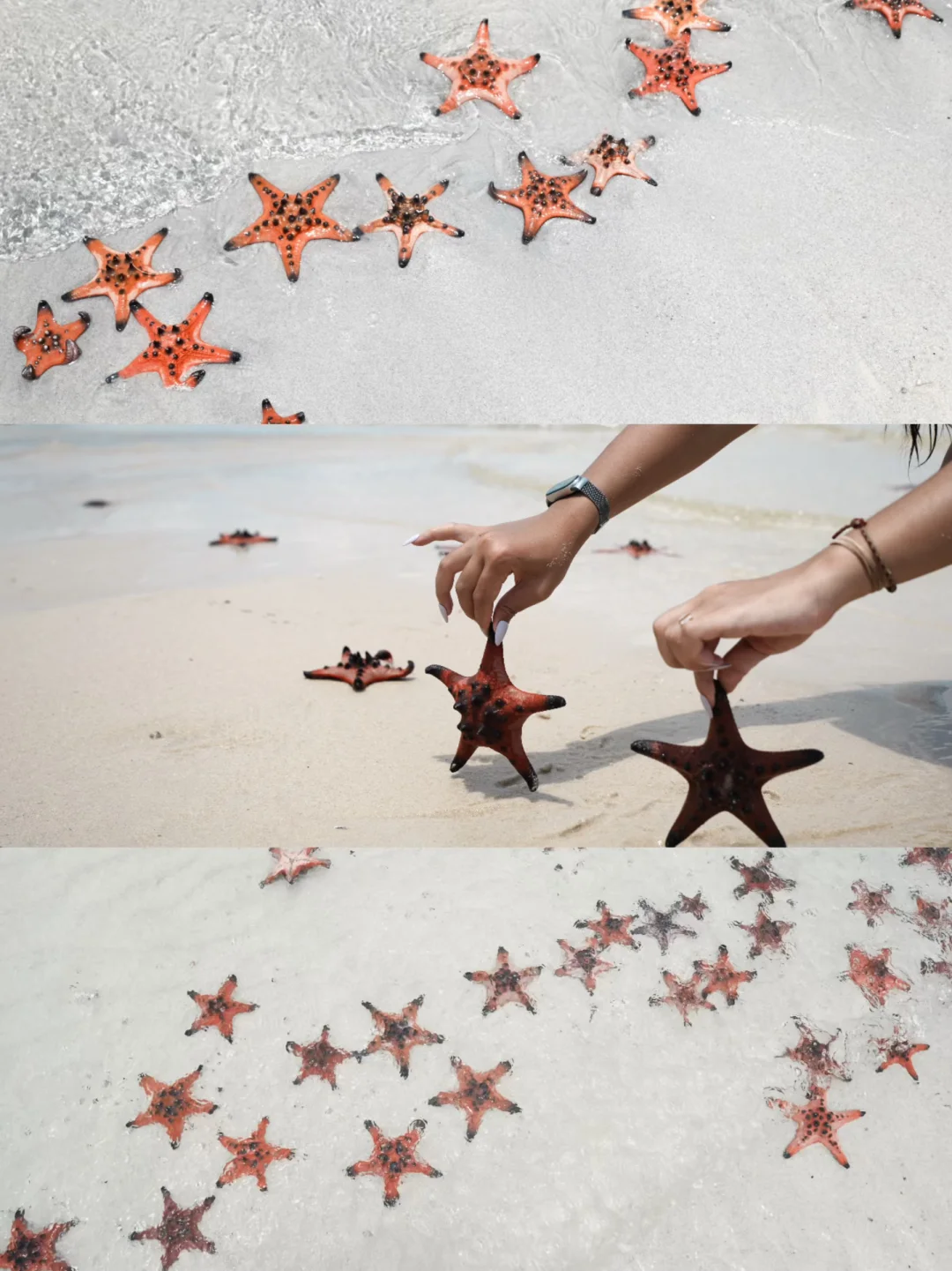 1️⃣沙滩上的海星是当地人从海里捞出来放上去的,也有一部分是海水冲过来的。我们拍照是用沙滩现成的海星自己摆好位置拍的~这样比较方便!