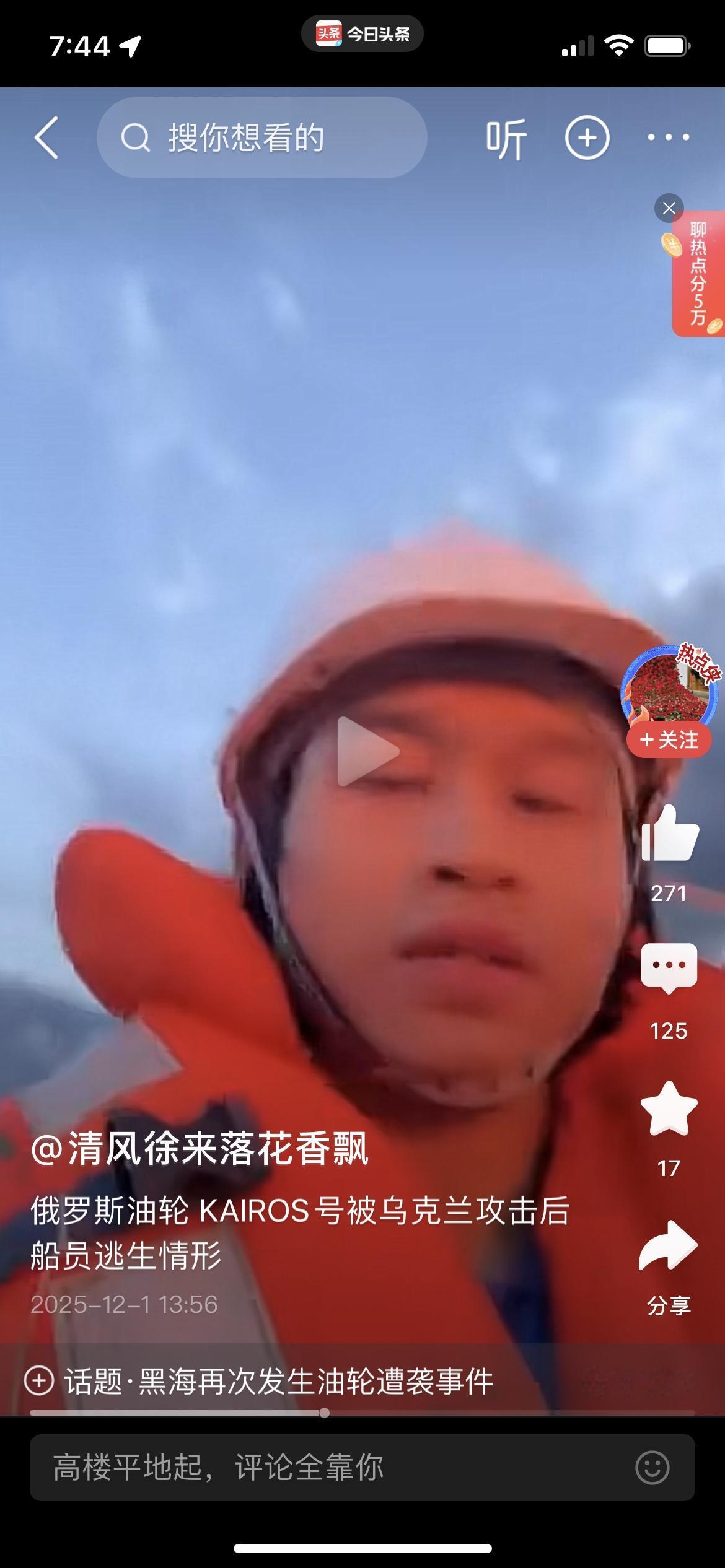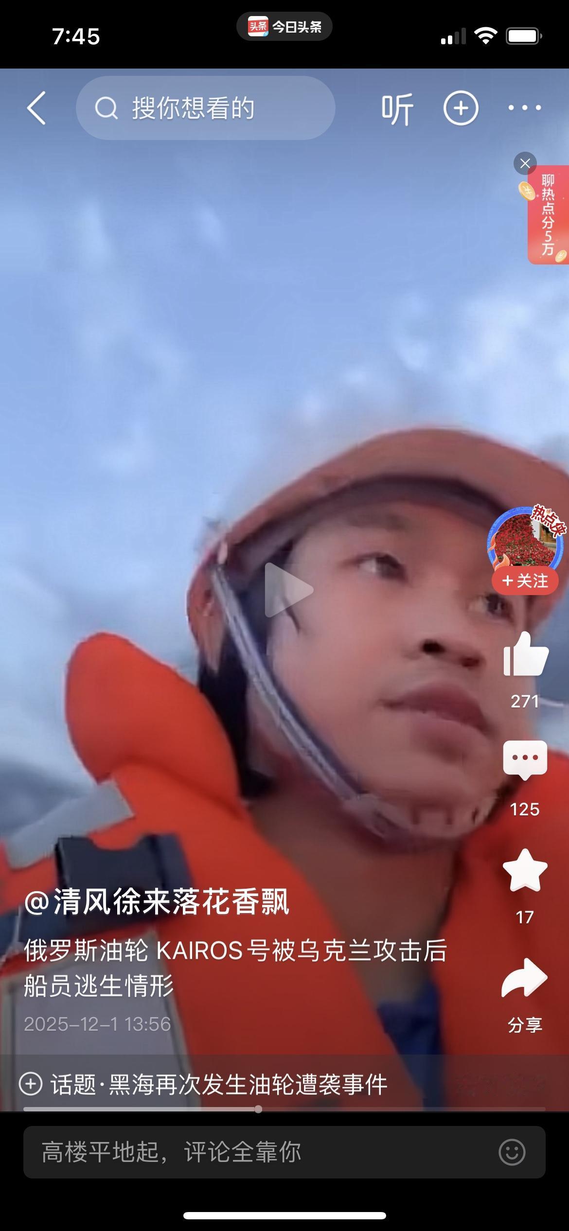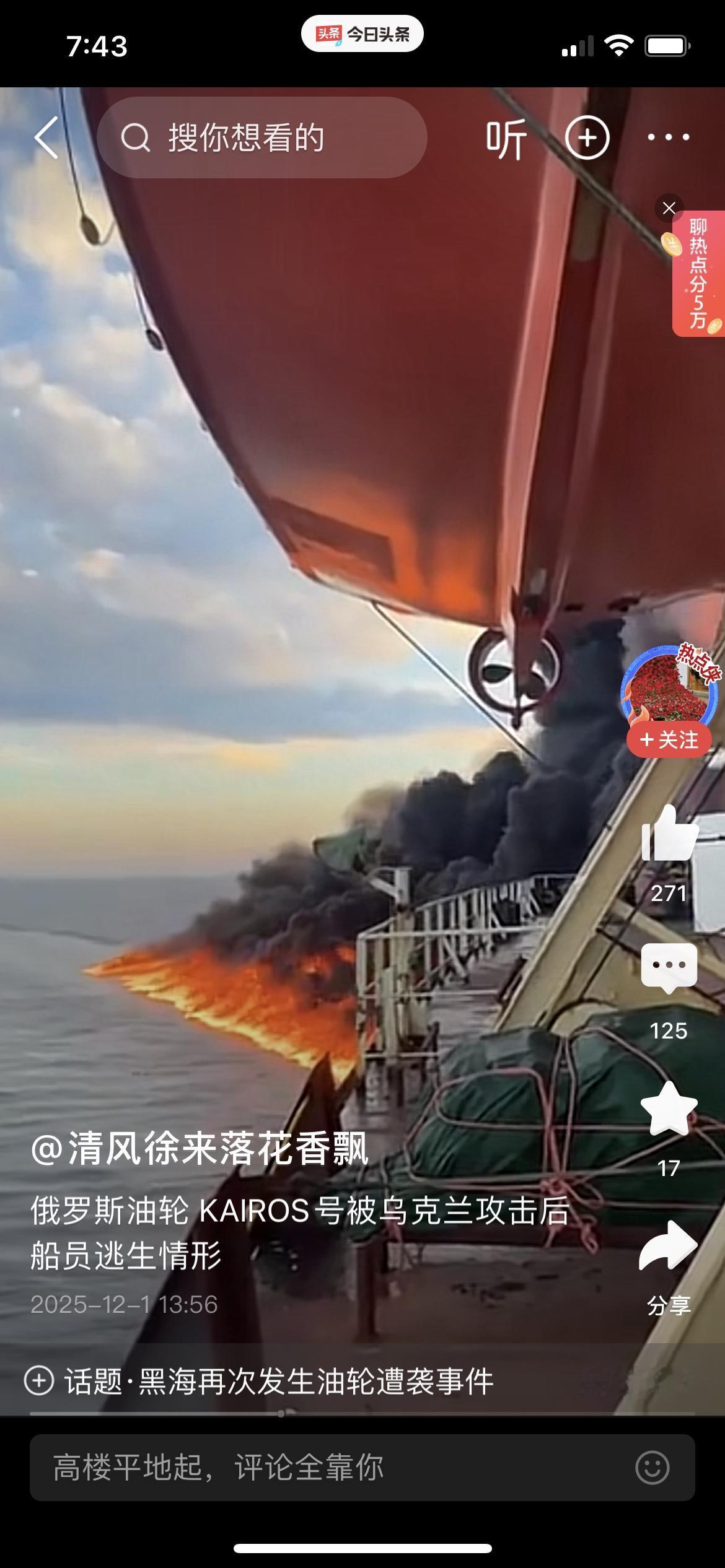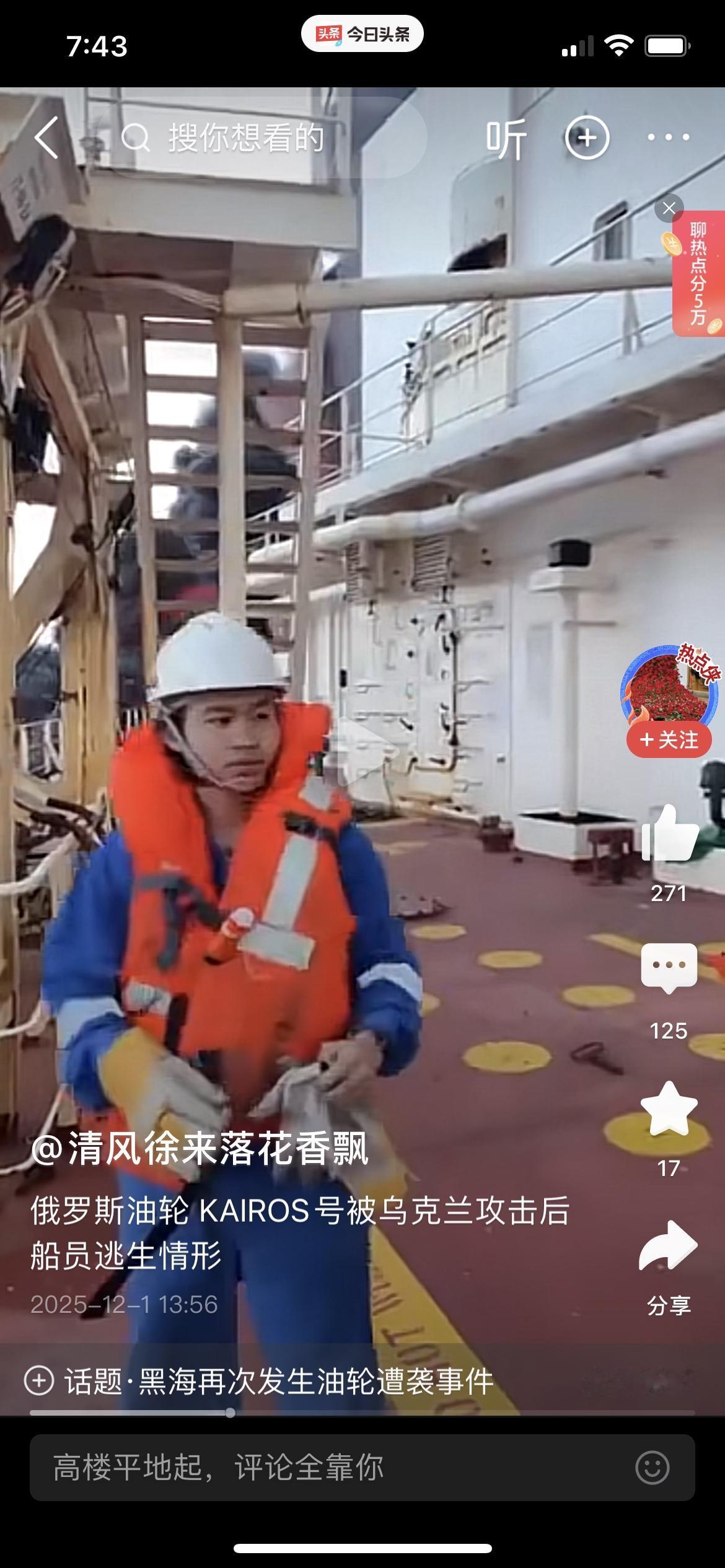 乌克兰在黑海击沉了两艘前往俄罗斯新罗西斯克运输石油的影子舰队的油轮。 全体船员被土耳其救走,无一伤亡。看着他们淡定的离开油轮,很是佩服。 看着他们的东方面孔,不是悬挂非洲冈比亚旗帜吗? 杀头的生意有人做,亏本的买卖无人做。 真是千真万确的真理。 这一次乌克兰手下留情,算是警告,下一次不知道怎么样了。