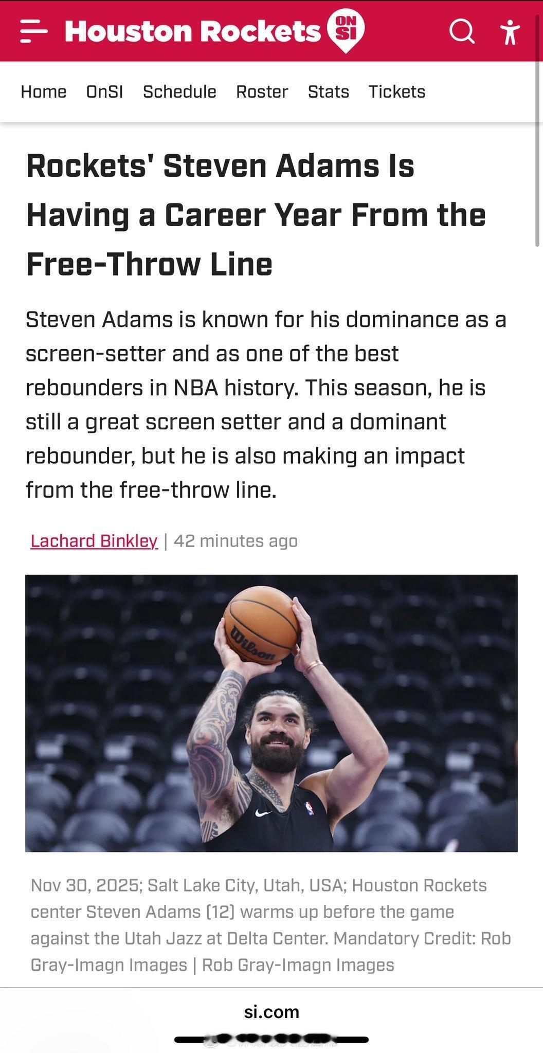 亚当斯多年来一直是联盟顶尖的挡拆球员和最佳进攻篮板手,对球队产生了巨大影响。他本赛季再次展现了这些能力,但同时他也在其他方面发挥着重要作用。亚当斯本赛季的罚球命中率创下了职业生涯新高。休斯顿火箭新赛季篮不住NBA吐槽大会