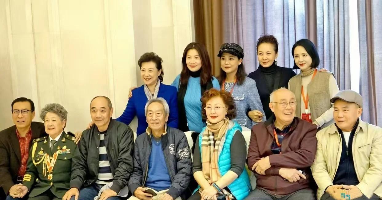 一众老戏骨合照:前排我只认出了陶泽如、王奎荣、许还山、朱德承,当然还有风姿绰约、仪静体闲、温婉如莲的赵静! 后排我认出了喜容绽放的王馥荔、长发垂肩的陈炜、戴着帽子的苗苗、梳着盘头的赵越与珠辉玉丽、绰有余妍的陶慧敏! 前排发花白着军装、英姿飒爽的是陶玉玲吧?最左侧那位文质彬彬的眼镜男有些眼生,你知其名字吗?