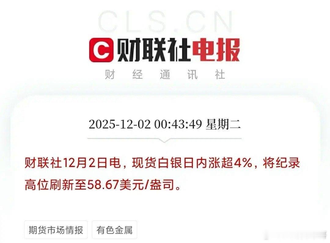 白银价格突破58美元,这几家A股“白银大户”引关注!第一家:被誉为“白银资源储量之王”——兴业银锡公司白银储量达到10909吨,位居A股上市公司前列。银漫矿业和白旗乾金达矿业,是核心资源所在。第二家:被誉为“白银营收规模领先者”——赤峰黄金公司白银产品营收,在业内处于领先水平,是重要的白银生产商之一。第三家:被誉为“全产业链有色巨头”——白银有色公司业务覆盖铜、锌、铅、金、银等,多种金属的采选、冶炼、加工及贸易,白银是其重要产品组成。第四家:被誉为“优质矿山长效服务商”——盛达资源公司拥有矿石储量,超过1500万吨,其中白银金属储量,达到了3573.82吨。现有矿山测算,服务年限为15年。第五家:被誉为“城市矿山综合回收专家”——湖南白银公司主营从铅冶炼阳极泥和废渣废液中,综合回收白银和多种有色金属,是我们国家白银生产出口的重要基地之一。第六家:被誉为“铅银双料行业龙头”——豫光金铅公司是我们国家电解铅和白银生产的龙头企业,在铅银联产领域,规模领先。