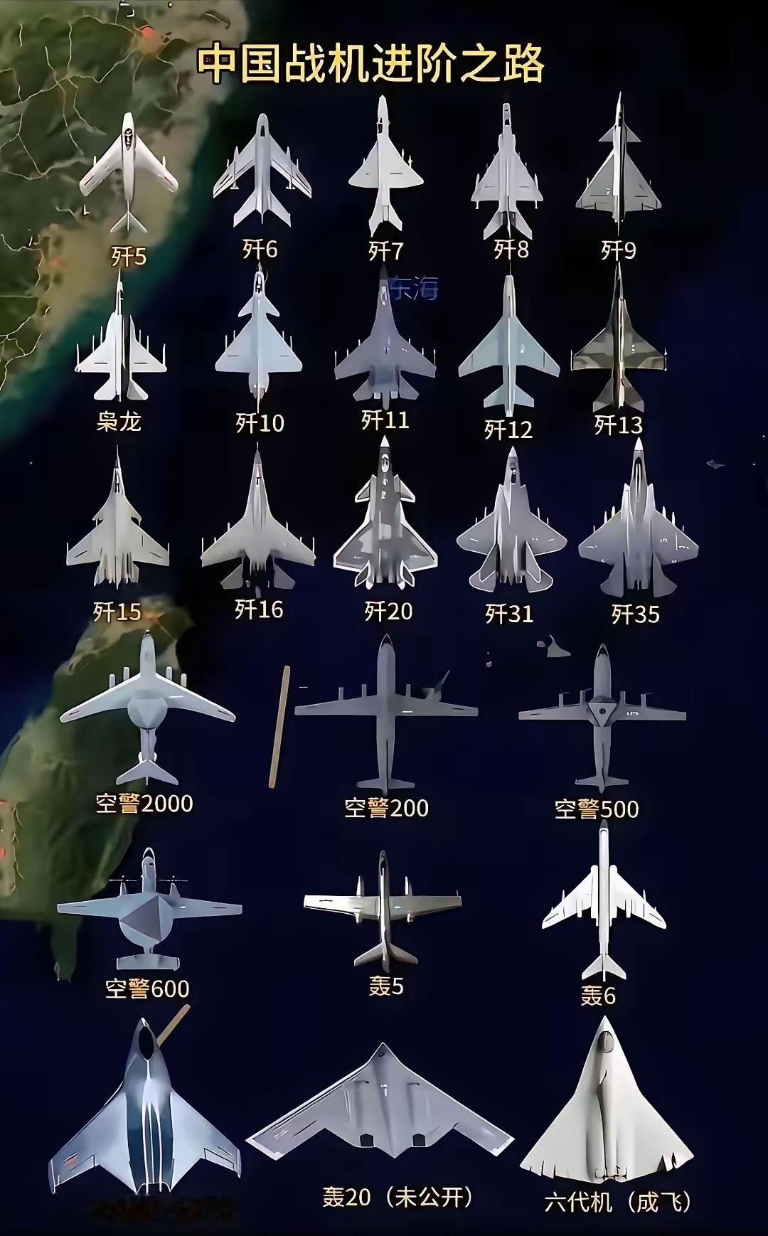 中国战机的进化迭代之路,战斗机从歼-5一路飙到了歼-50(沈飞六代机)。 预警机从空警-200、500、600,再到空警-2000到3000,真是变化迭代之快,代代有新机。 唯一一成不变的就是轰炸机,从轰-5到轰-6,轰-6是“老骥伏枥”,还在扛大梁,心心念想的轰-20盼了多久,依然是看不到影子!虽然无人机轰炸机可以“量大管饱”,但是轰-20的地位在大家心目中是举足轻重,赶紧补齐这块短板。