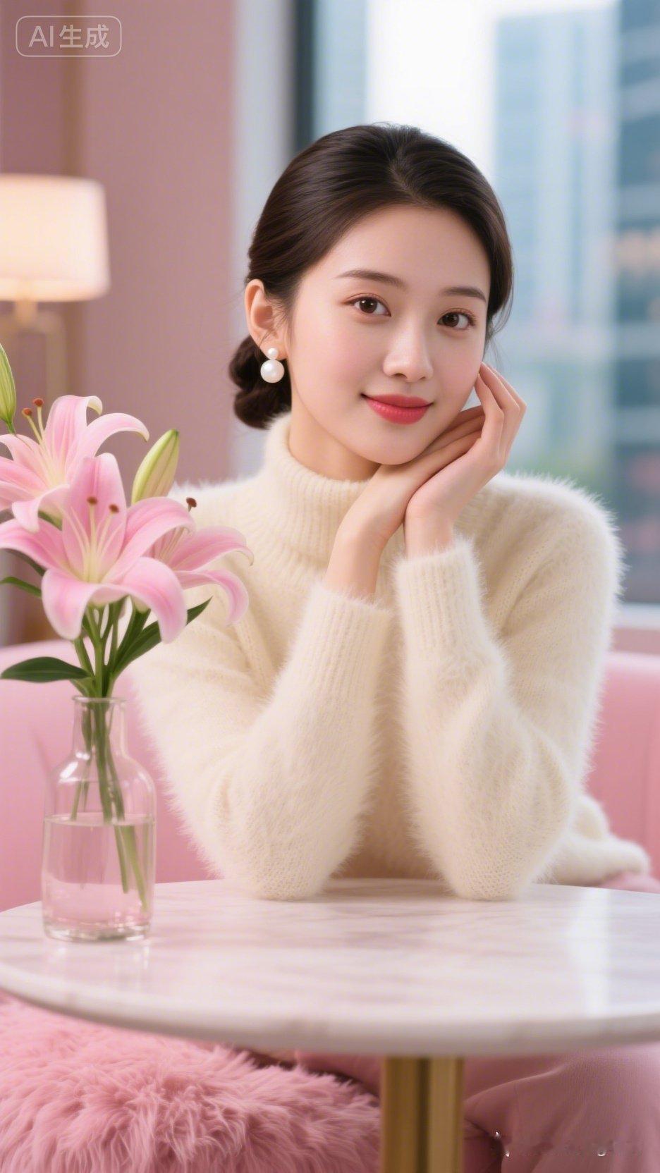 少女着简约穿搭,侧脸望向窗外开心笑意藏于眉眼,清新自然美丽。