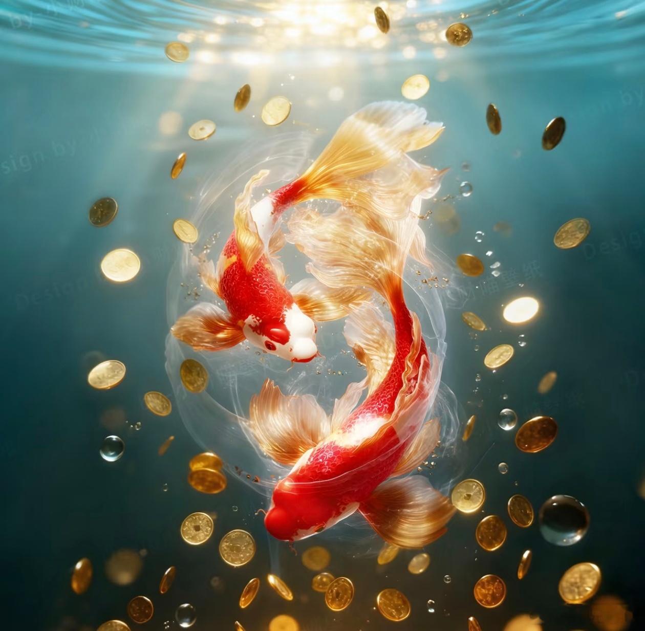 双鲤开运 携鑫而来,锦鲤的流金许愿池!点赞许愿吧,心不唤物物不至。