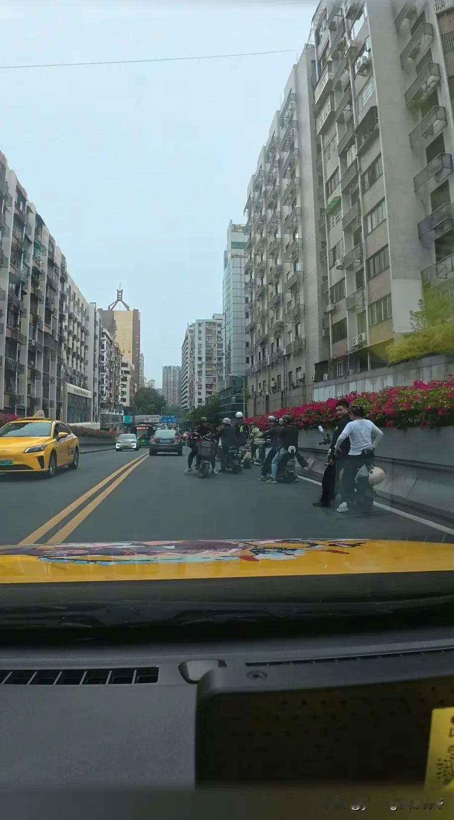 出租车行车记录仪记录下的画面。在广州小北路立交桥上,聚集了不少电鸡,由于桥下有执勤人员的查车,这些违规上桥行驶的电鸡也不敢贸然前行,聚集停在桥面上,导致交通拥堵。甚至更有电鸡为躲避查车,直接在桥面逆行返回,人为增加了路况的危险性。