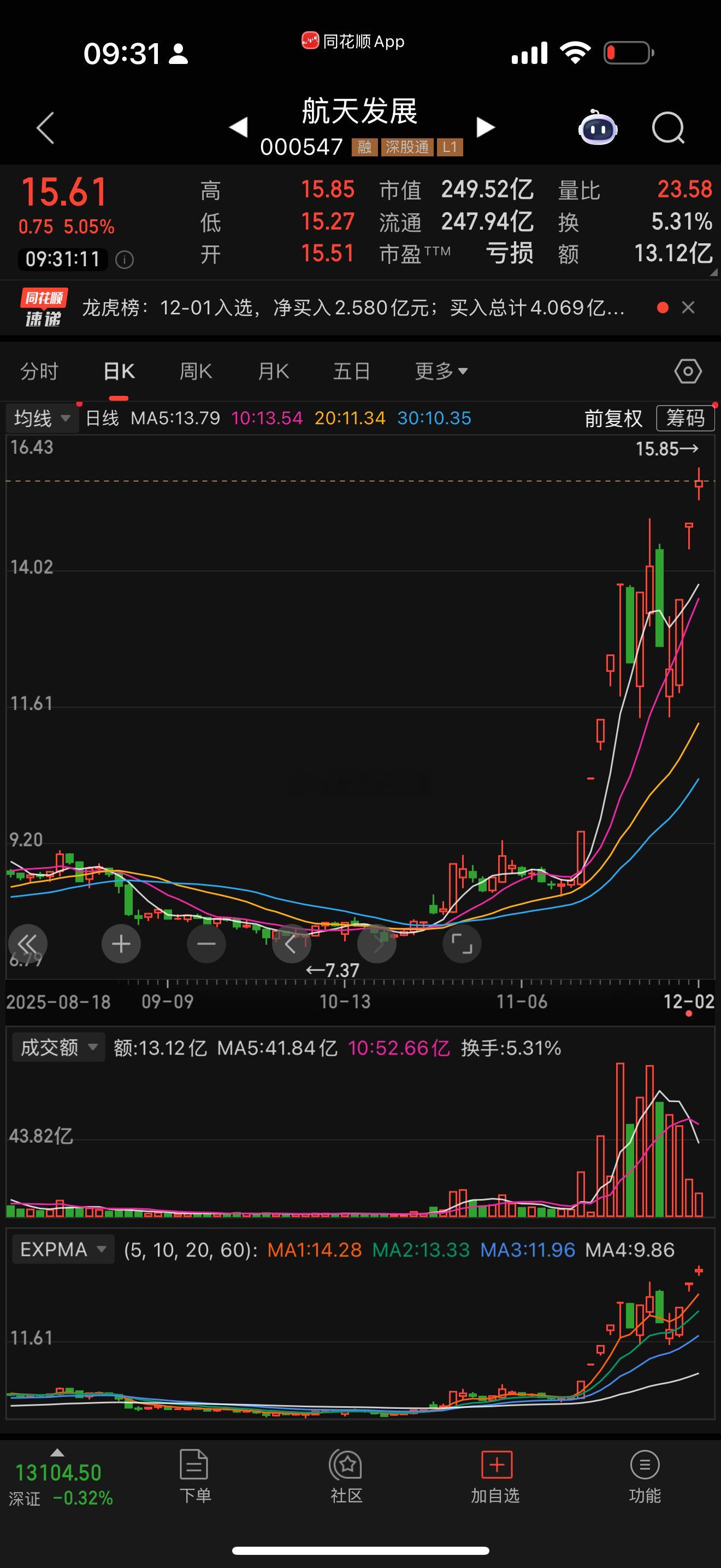 买入了航天发展的,可以平仓卖出航天动力了!去弱留强!