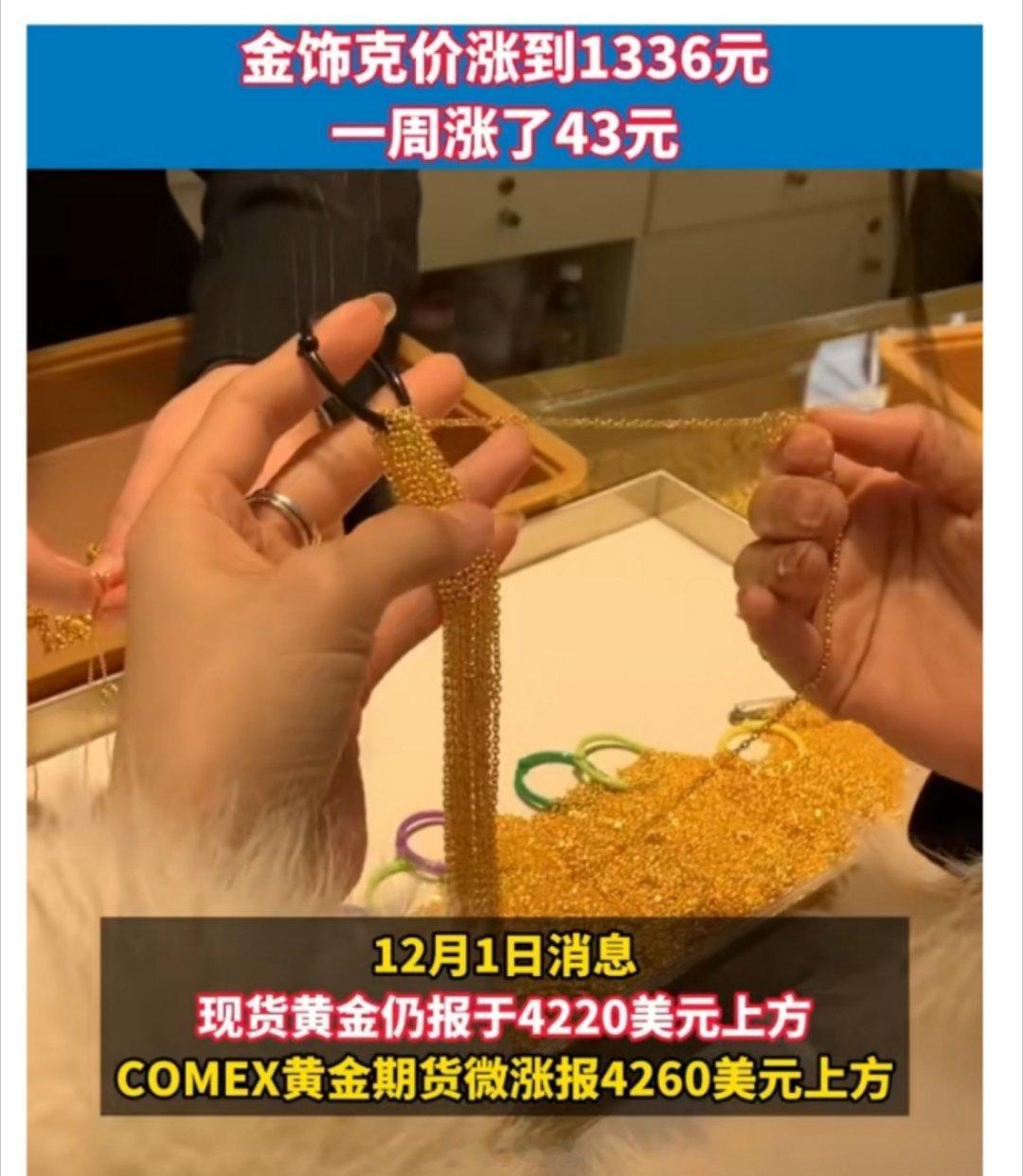金饰克价涨到1336元老话说:乱世藏金。金价上涨一方面跟国际环境有关,再有就是跟