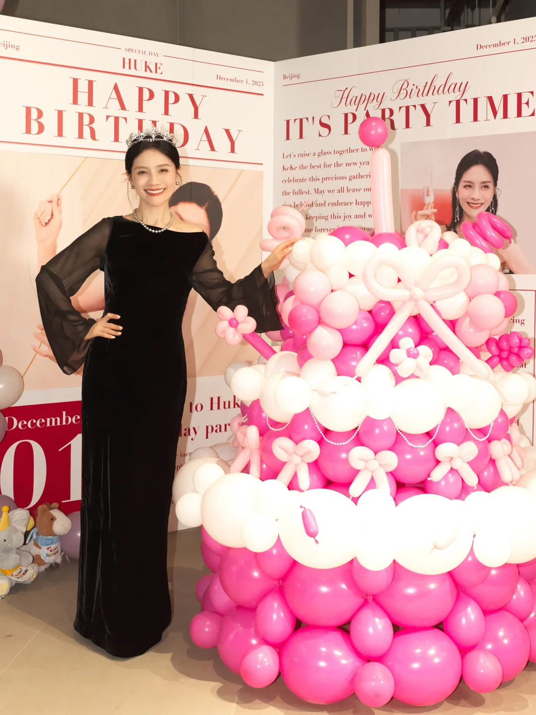今天是胡可五十岁生日,胡可的生日派对,身穿黑色礼服,头戴皇冠,像极了女王,时间过