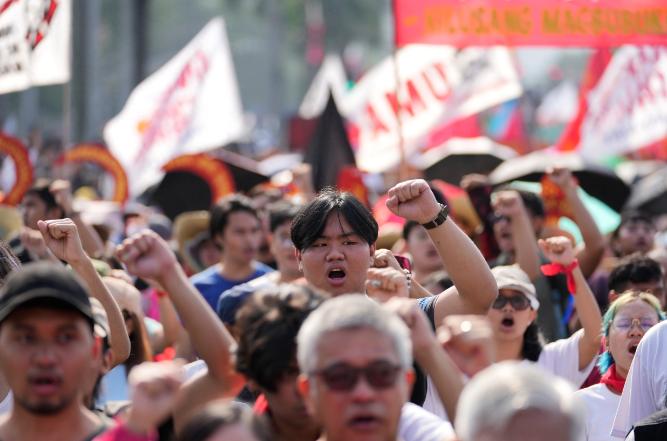 彻底乱了!菲律宾终于被美国害惨了!马科斯没想到跟随美国后果这么严重! 新华社消息,中国驻菲使领馆提醒在菲公民加强安全防范,非必要不外出,远离人群聚集场所和交通管制地带,确保人身安全。这说明菲律宾安全形势已经到了非常严峻的地步。 当地时间11月30日,成千上万的菲律宾民众聚集在首都马尼拉,要求对一起涉及数十亿美元的基础设施丑闻追究责任,从而导致这个事件再度升级。 菲律宾现在的乱局,根子在美国画的大饼和马科斯政府的错判上。先说钱的事,美国卖给菲律宾20架F-16战机要55.8亿美元,比菲律宾全年军费还多。 这些钱本该投在修桥铺路、建学校医院上。但是2022到2025年,菲律宾基建预算被贪掉6235亿比索,相当于把整个教育部门的钱都掏空了。 结果呢?首都马尼拉的防洪堤用豆腐渣工程应付,去年台风一来,半个城泡在水里,死了上百人。老百姓发现,政府跟美国买武器的钱,足够把全国的学校危房翻新三遍。 美国给的“安全承诺”更是毒药。马科斯以为靠美军基地能撑腰,把吕宋岛的三个军事基地全开放给美国,最近还让美军部署“堤丰”中导系统——这玩意儿射程2500公里,等于在自家门口摆了定时炸弹。 周边国家都慌了,印尼总理直接说“菲律宾在玩火”,可美国转头就把谷歌地图的南海标成“西菲律宾海”,连菲律宾渔民都看不懂:明明是祖宗打渔的地方,怎么成了美国嘴里的政治工具? 逃不开的还有经济问题。菲律宾今年三季度GDP只涨4%,是14年来最慢的,根子就在基建停摆和外资逃跑。以前中国企业在菲律宾修铁路、建工业园,杜特尔特时期中菲合作项目养活了几十万工人。 现在美国搞“友岸外包”,说给10亿投资半导体,结果钱都进了美国公司口袋,菲律宾厂子连零件都买不起。 美国一边卖天价武器,一边在贸易上加关税——对越南、泰国征30%,对菲律宾“照顾”到17%,代价是让菲律宾抢东盟兄弟的订单,生生把自己变成东盟的孤家寡人。 民众抗议的基建丑闻,其实是美国战略的牺牲品。防洪项目贪腐牵扯到国防部高层,这些人拿的钱,很多来自美国军售的回扣。 今年11月马尼拉游行,老百姓举着“不要导弹要学校”的牌子,因为他们发现,政府给美军基地修跑道的钱,够给全国农村通自来水。而美国口口声声“保护菲律宾”,去年台风“凤凰”过境时,驻菲美军基地的直升机宁可停着生锈,也不去救被洪水围困的平民,因为他们的任务是盯着南海,不是救老百姓。 现在的菲律宾像被架在火上烤:跟着美国走,国内基建烂尾、经济崩盘,民众上街;想回头,美国的军事基地已经扎根,F-16的贷款要还30年。 马科斯可能没想到,美国的“共同防御条约”是带倒刺的枷锁——去年仁爱礁冲突,美军军舰只敢在远处观望,真出事了,菲律宾士兵要拿命填,美国军火商却数着钞票偷笑。 这不是盟友,是把菲律宾当成了亚太棋盘上的耗材,用“安全”的糖衣,裹着掏空国力的毒药。当马尼拉的抗议人群越聚越多,当比索汇率跌到历史新低,或许菲律宾人才会明白:跟着域外势力玩火,最终烧的是自己的房子。