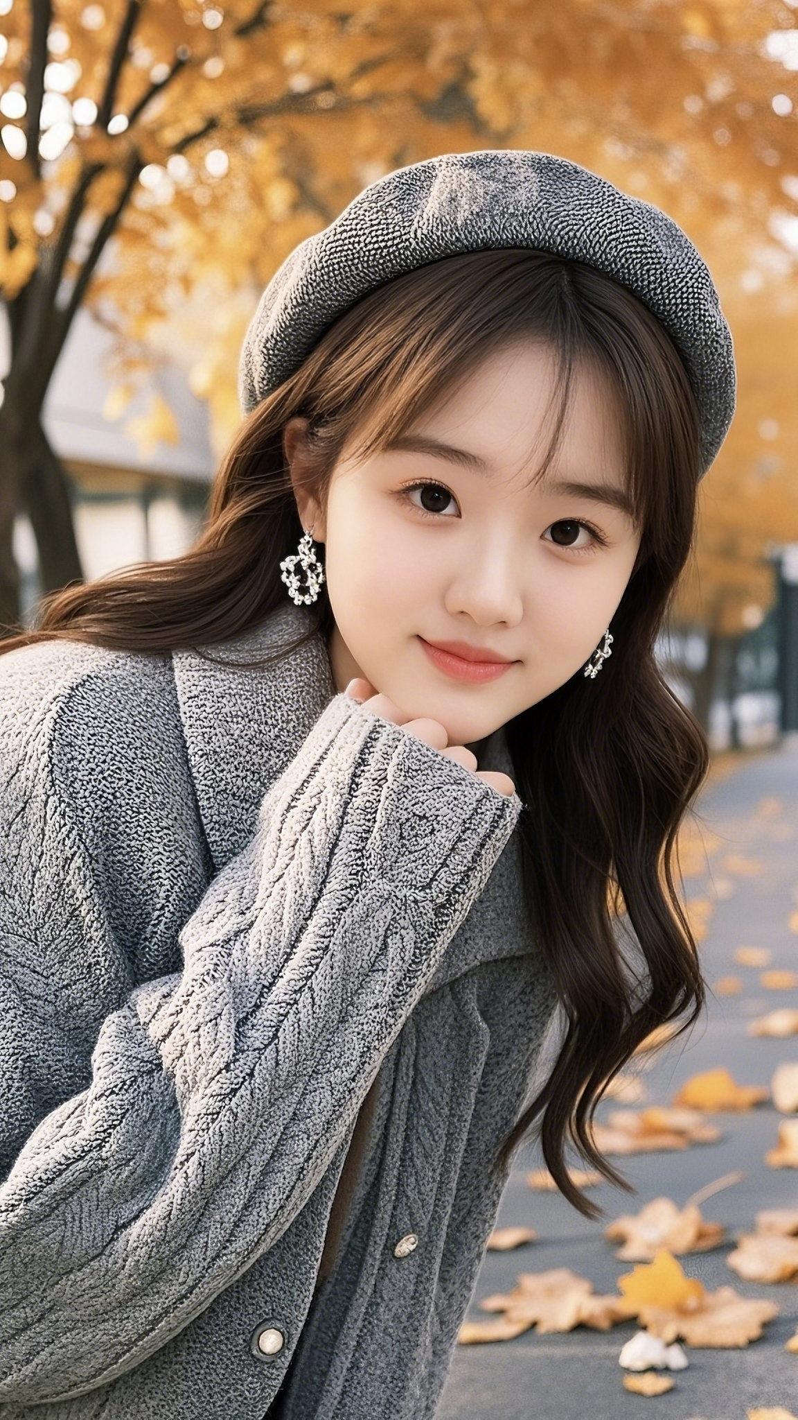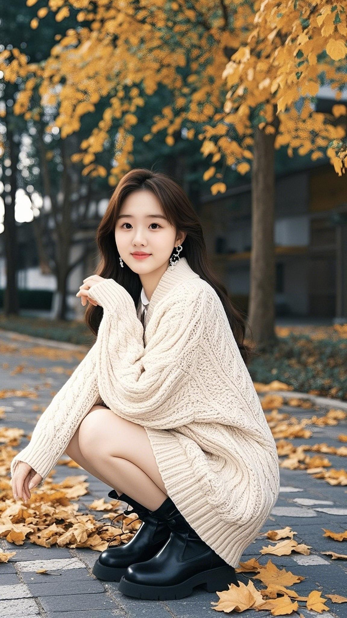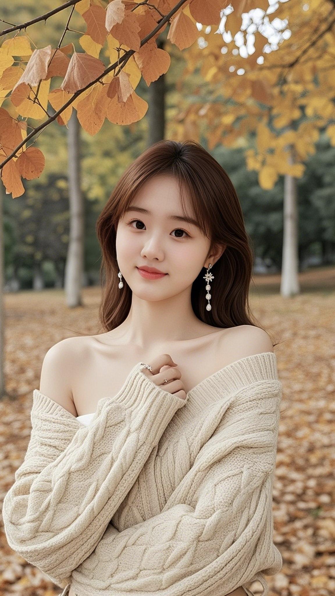 美女高清写真秋来了,树叶黄了落了,毛衣也穿上了
