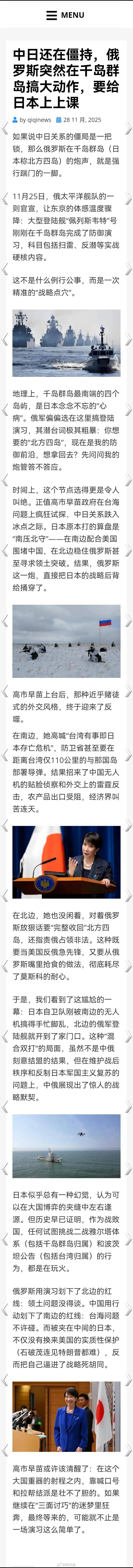 中日还在僵持,俄罗斯突然在千岛群岛搞大动作,要给日本上上课! 中国海警依法警告驱离日本船只何天恩G7凭什么对中国提3个不许海外新鲜事