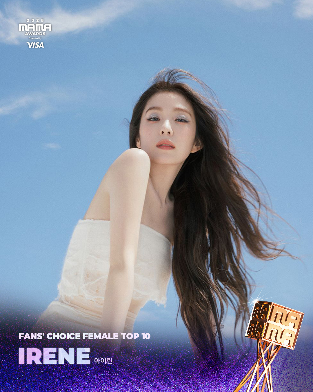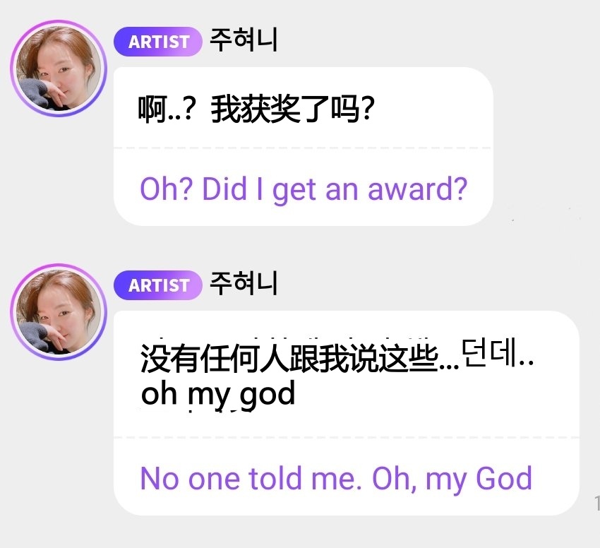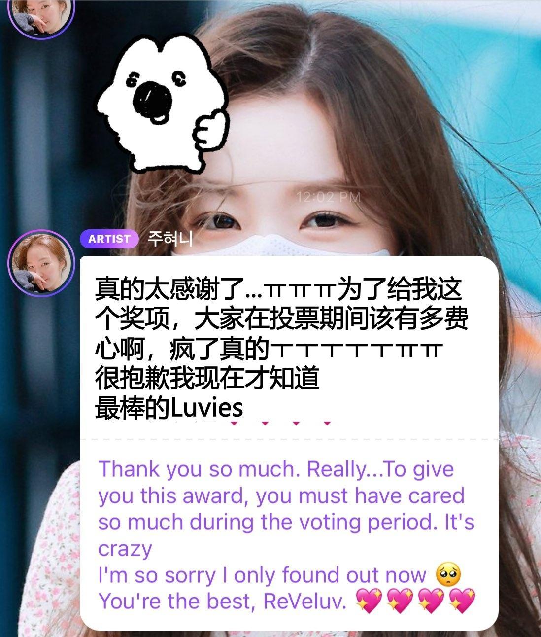 今天才知道自己获得MAMA“FANS’ CHOICE FEMALE TOP 10”奖项的IRENE