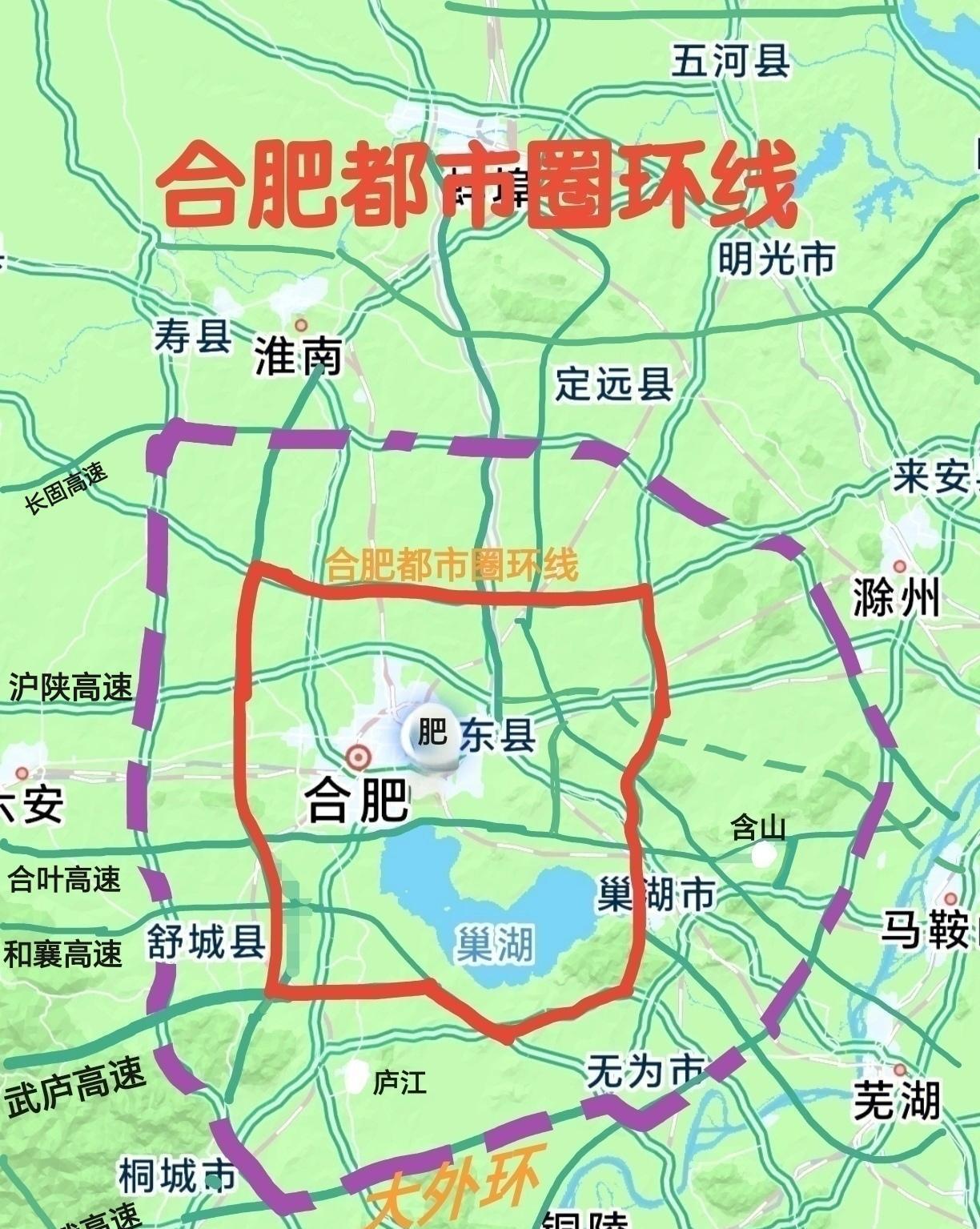 前面两篇微头条,我主要从安全、群众经济承受力(苏南那么有钱,都不愿走索马里隧道,何况和襄高速服务的大部分是中西部打工人呢?毕竟大家都是过日子的人)都市圈环线应有的姿态,以及武汉至庐江高速将引起巢湖南北两岸东西向交通格局发生重大调整四个方面来阐述放弃巢湖隧道的理由。那么,放弃巢湖隧道后,我们的对策是什么呢? 巢湖北岸的高速路网正面临一个现实难题:东边涌来的车流像四条并行的河流,分别来自南京方向的沪陕高速、马鞍山方向的沪蓉高速、芜湖方向的沪武高速和芜合高速,可合肥手里的“接水管”却只有南北绕城高速和宁信高速两根——沪陕与沪蓉还在此并线,等于少了一条通道。 节假日里,南北绕城高速拓宽成八车道后,拥堵确实缓解了些,但和襄高速一旦开通,这条“水管”依旧会因流量过载而“呛水”。 破局的第一步,是让“来水”与“接水”的管道数量对等。在巢湖北岸,和襄高速将与合叶高速并线,直连淮桐高速,就像给太湖配上环湖步道那样,让合肥都市圈也拥有一圈完整的高速闭环。 这条闭环可不只是画个圈那么简单。铜商高速通车后,芜合高速的压力会被分流,而天天高速芜湖段修通后,紧接着要把无为塔桥枢纽到桐城南枢纽的直线连上,这样沪武高速就不用再和其他线路挤在一起,姥桥、石涧、沐集这些枢纽也能喘口气了。 有人会问:绕路20多公里,司机愿意吗?在含山县城东边,一条和襄高速支线将直接连到沪武高速,平时车辆可以随便走北岸,到了节假日,就把湖北方向的车流引到巢湖南岸——多烧点油,但不收通行费,对跑长途的中西部打工人来说,这笔账其实划算。 巢黄高速南延到银屏镇后,还要继续往南接到原沪武高速,整条路统一叫明巢高速,这就是新的东环线。 再加上巢湖南岸那段原沪武高速、铜商高速的一部分,以及武汉至庐江高速,这三段路拼起来,就是合肥都市圈的南环线。 这条路走起来比隧道踏实多了。巢湖北岸的合叶高速因为没预留空间,得在环湖北路上“做文章”——两头架高架,中间在上海路到庐州大道之间挖隧道,地面的环湖北路也要拓宽成双向六车道。 高架段双向八车道,隧道段地下两层、每层单向四车道,工程量不小,但明挖施工比隧道省钱,安全性也高。 动工前得先把方兴大道和锦绣大道修好,免得影响环湖北路通行,所有工程都能慢慢来,不慌不忙地把账算平。 新的环线走起来方方正正,把大湖揽在怀里,舒城、无为的居民开车过来,就像走在家门口的路上。 比起钻湖底的隧道,这样贴着湖岸的路——既省了天价建设费,又让老百姓跑得起,或许这才是都市圈环线该有的样子