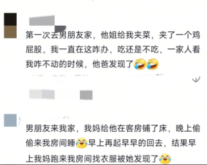 他姐给我夹菜,夹了一个鸡屁股,一家人看我咋不动的时候,他爸发现了