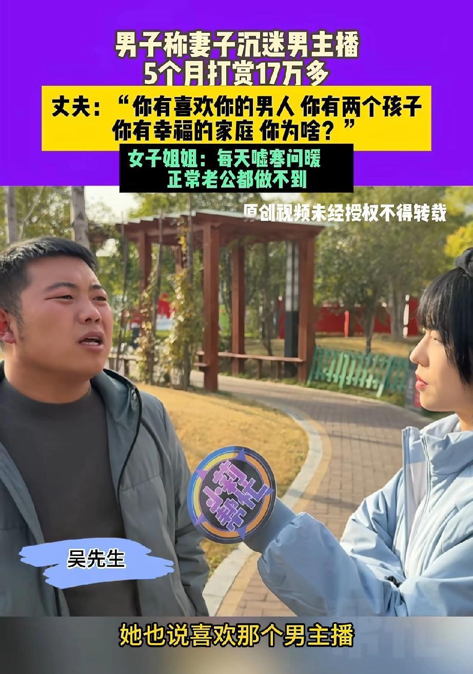 太糊涂了!河南郑州,一女子婚后喜欢看男主播,而且不光是看,还会进行打赏,五个月的时间里给对方打赏了17万,丈夫得知后,既生气又不能理解,他不明白妻子在家里要什么有什么,为什么还要喜欢别人,妻子却表示:他们给的正常老公都做不到 起初,老公还不知道妻子给男主播打赏,还是一次翻看手机账单时,才发现问题。一连串的转账记录,从几百到几千,全是用于打赏和礼物,他愣了很久,才去问妻子张女士这是怎么回事 妻子没隐瞒,说那是她喜欢的一个男主播,这些钱都是打赏给他的。李先生第一反应是不理解,接着是愤怒。他想不通:“你有喜欢自己的男人,有幸福的家庭,还有两个孩子,为何要这么做?” 面对丈夫的质问,张女士反而很坦然。她说,那个男主播对她很好,每天都会主动发消息嘘寒问暖,提醒她吃饭穿衣,听她说生活里的琐事。这些事,你做不到。她不光打赏,还加了对方微信,给他点外卖、买衣服、买首饰,甚至买药,像照顾一个亲近的人。而这些细致入微的关怀,她似乎从未在丈夫身上同样付出过 后来,在媒体陪同下,李先生找到男主播所在的公司,表明这些打赏用的是夫妻共同财产,希望拿回属于自己的一部分。协商还在进行中 目前来看,这17万是在婚后花出去的,如果夫妻双方没有约定明确财产归属,一般情况下属于夫妻共同财产。是有机会能追回,但需要证据充分、途径正规,可能涉及民事诉讼,且结果不完全确定 可问题是,不管这些钱能不能回来,能拿回来多少,夫妻两人的关系都很难再回到过去了,而这里面,很大的原因是妻子的问题 男主播的嘘寒问暖是一种服务,是为了维持收入,是职业需求,不是情感承诺。这种虚拟世界里的温柔是可以随时切换对象的,换个用户照样说同样的话,没有丝毫成本。然而丈夫的付出是落地的,是柴米油盐 还是希望这位妻子能够好好清醒一下,认识到这一点