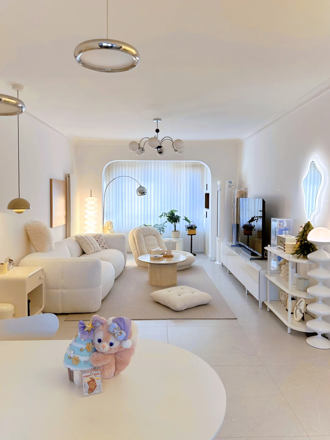 奶油色家居 温馨家居氛围 小户型显大 奶油风装修 客厅装修灵感库 硬装越简单家里越显大 跟着学装修 大白墙 玲娜贝儿 现代简约暖白色