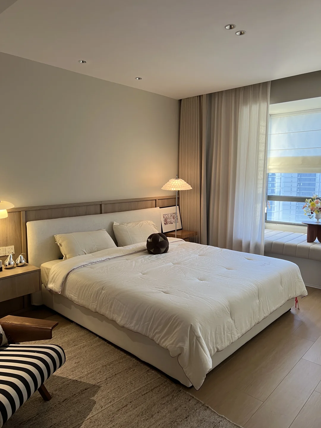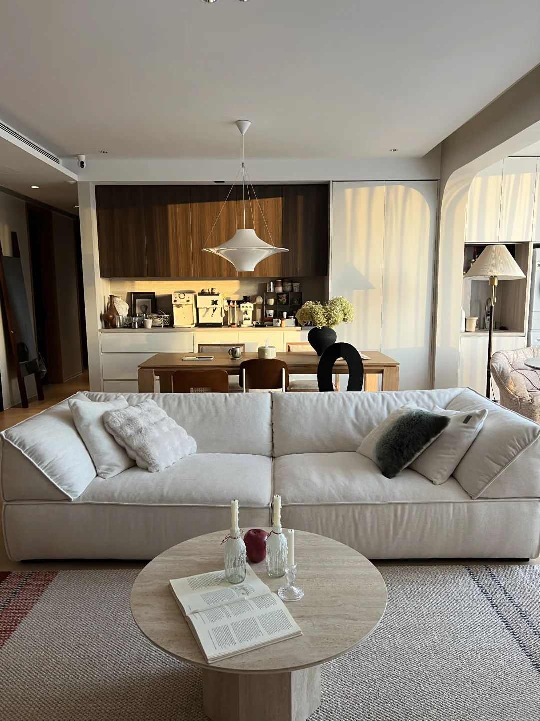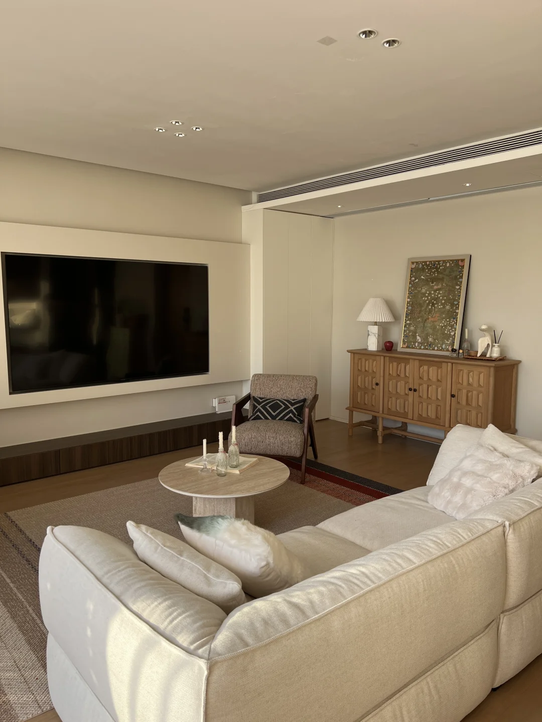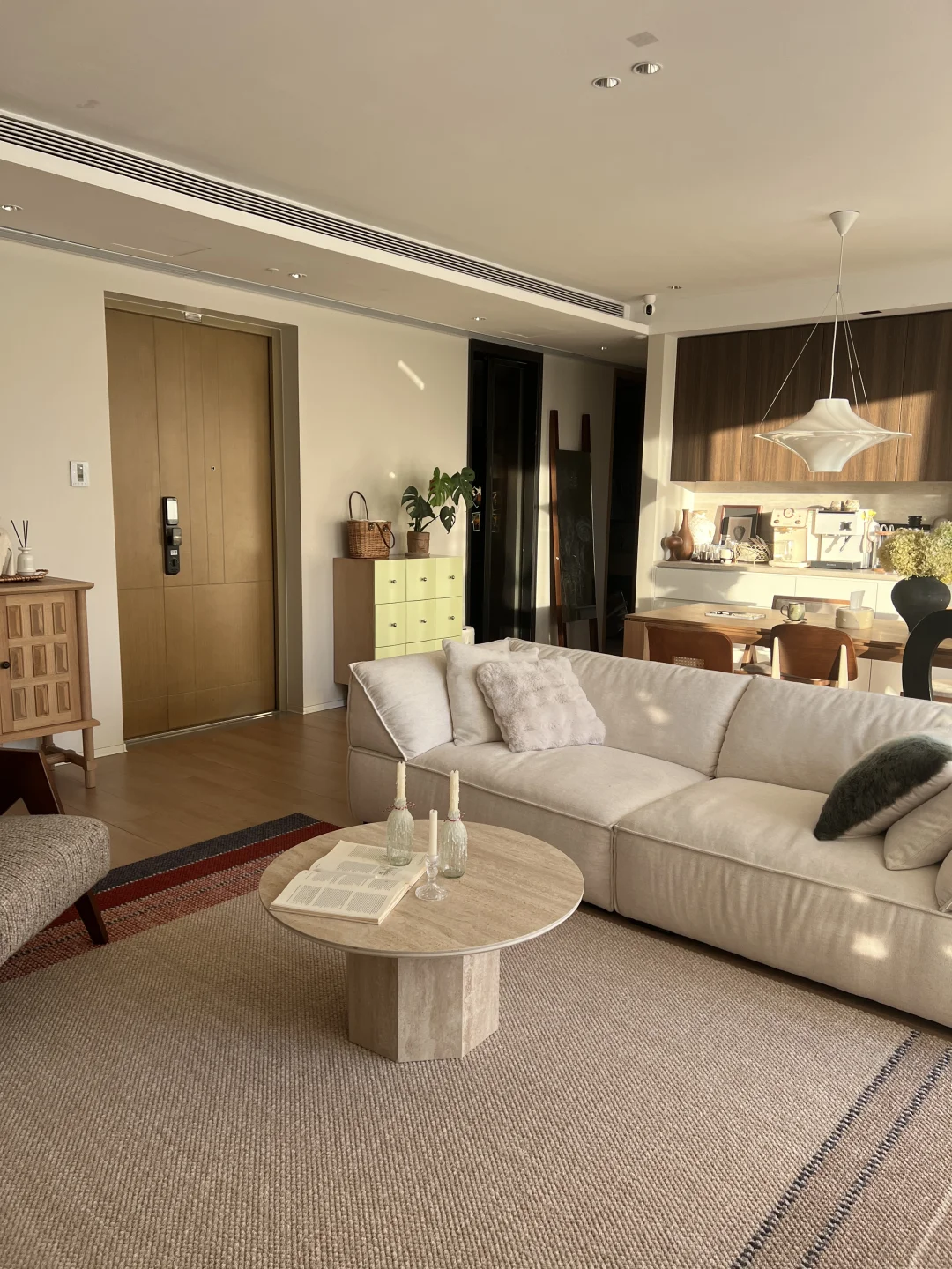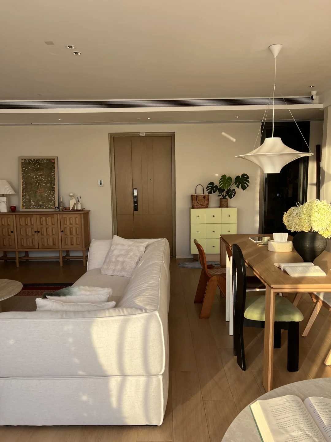 哈喽,又来介绍我的家了~ · 【基础信息】:横厅,143平,精装改造 【硬装】:打通阳台、全屋通铺木纹砖,让家里温馨又显大,通过全屋定制来进行空间划分 【软装】:从客厅到餐厅,色系自然过渡,给人温柔舒适的感受 -最近给家里点缀了一些色彩,有一丢丢轻中古彩的味道了,也增添了一些新鲜感 -建议大家软装不要一次性购入,可以慢慢看慢慢选,毕竟有些单品,可能还没买就已经看腻了 · 不知不觉,新家已经入住两年 留下了很多生活的痕迹 也成了我住进来就不想出门的家~