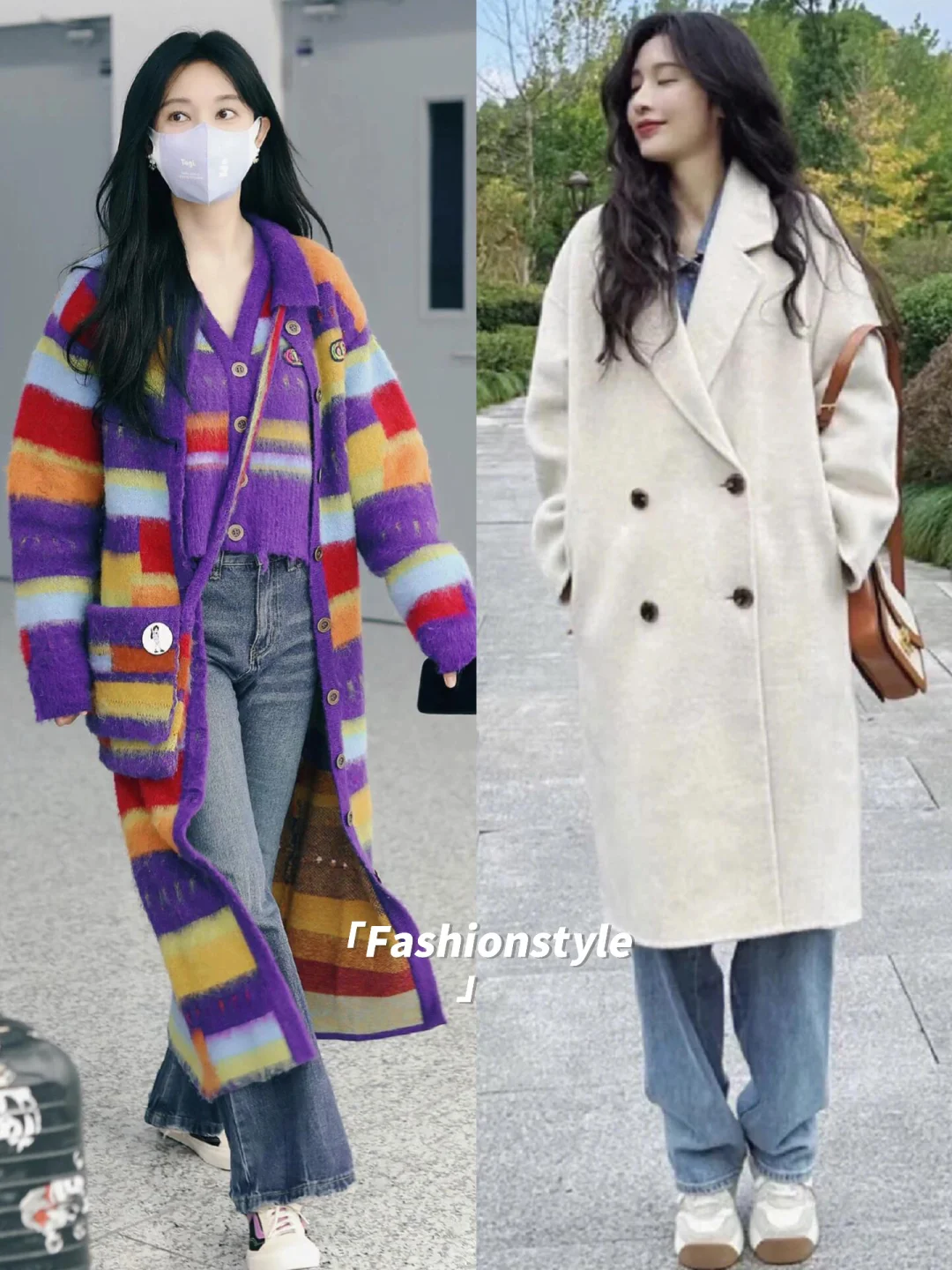 蜜雪冰城门口的打卡地,牛仔穿搭简直绝了!时尚牛仔夹克搭配高腰牛仔裤,都市时尚感这