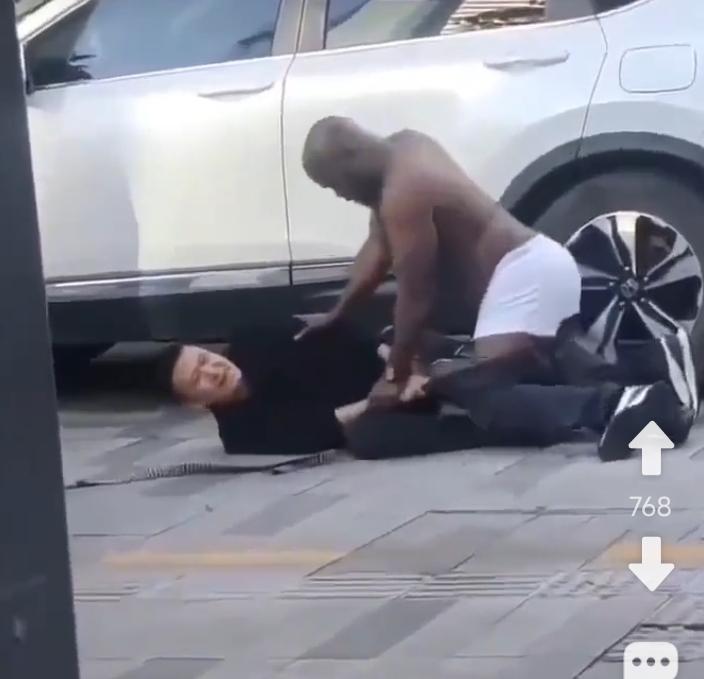 非洲人行骗到中国来了。 某地街头,一汉子和非洲人在一块扭打。汉子不敌身体肥硕的非洲人,被摁倒在地。 汉子依然奋力抓着要逃的非洲人,大喊路人,帮我抓着他,他骗了我70万。 这汉子也真是心大,居然敢与非洲人有金钱来往,而且还是70万元的大数目。