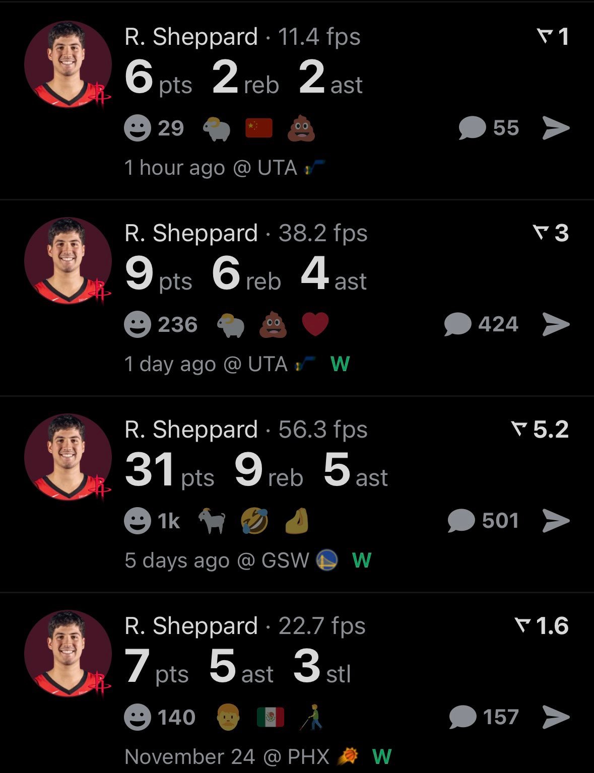 注意看 詹姆斯现在才4分他连续1296场得分上双的记录可能要破 🤔太阳vs湖