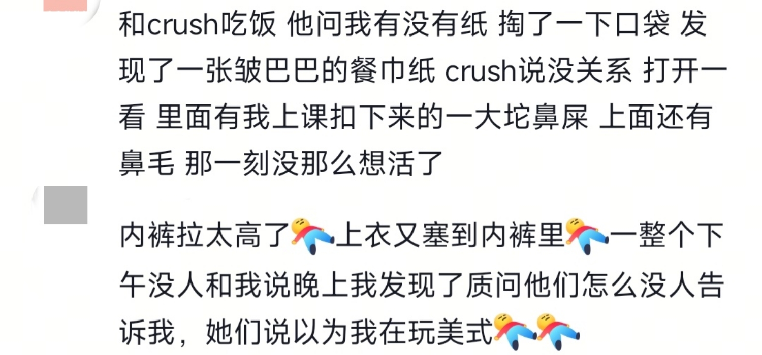 打开看里面有我上课扣下来的一大坨鼻屎,上面还有鼻毛,那一刻没那么想活了