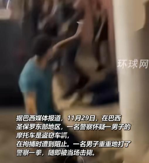 11月29号的巴西圣保罗东部街头,本来挺热闹的马路突然就成了“生死现场”,一个男的冷不丁绕到警察身后照着后脑勺卯足了劲儿闷了一拳,谁能想到转瞬间警察的枪“砰”地一响,这人当场没了气儿一条命直接交代在街头,把围观的人都看傻了。 虽然事儿说起来不复杂,但每一步都让人捏把汗,当时警察在街头巡逻,眼尖地瞅见这男的骑的摩托车不对劲,看着就像偷来的赃物,于是上前示意,想扣下车查查身份。 可这男的压根不配合,当场就拦着警察不让拘,嘴里还骂骂咧咧的。 更横的是,他见警察不肯松口,居然偷偷绕到警察身后,趁着对方没防备,照着后脑勺结结实实抡了一拳。 这拳力道看着就不轻,结果拳头刚落下,警察的枪就响了,男的瞬间倒在地上没了动静,现场一下子安静得吓人。 这事儿一被传到网上评论区直接炸成了锅,有人看得心揪紧直言:“就一拳啊,再不对也不至于直接开枪要命吧,这执法也太狠了,看完后背都发凉,一条人命就这么没了太可惜了。” 目前这男的具体身份、警察开枪前有没有喊警告、现场有没有其他关键证人,这些关键信息还没往外透。 但这事儿摆出来谁不得琢磨琢磨,一边是警察执法时的“保命本能”,面对突发危险的瞬间反应,一边是“一拳换性命”的扎心结果,两条人命背后是两个家庭的牵挂。 其实不管是执法者还是普通人,遇到事儿多一份冷静,少一份冲动,是不是就能避免这样的悲剧?冲突里多留一点“缓一缓”的余地,或许就不会走到生死相向的地步。