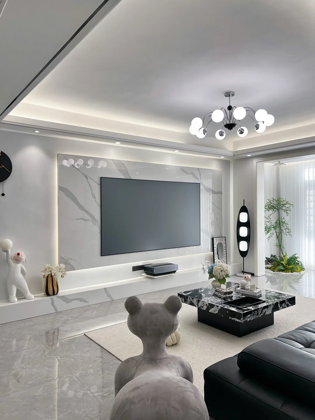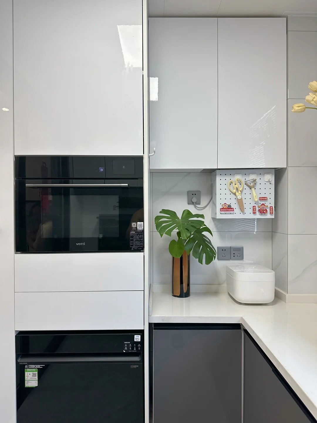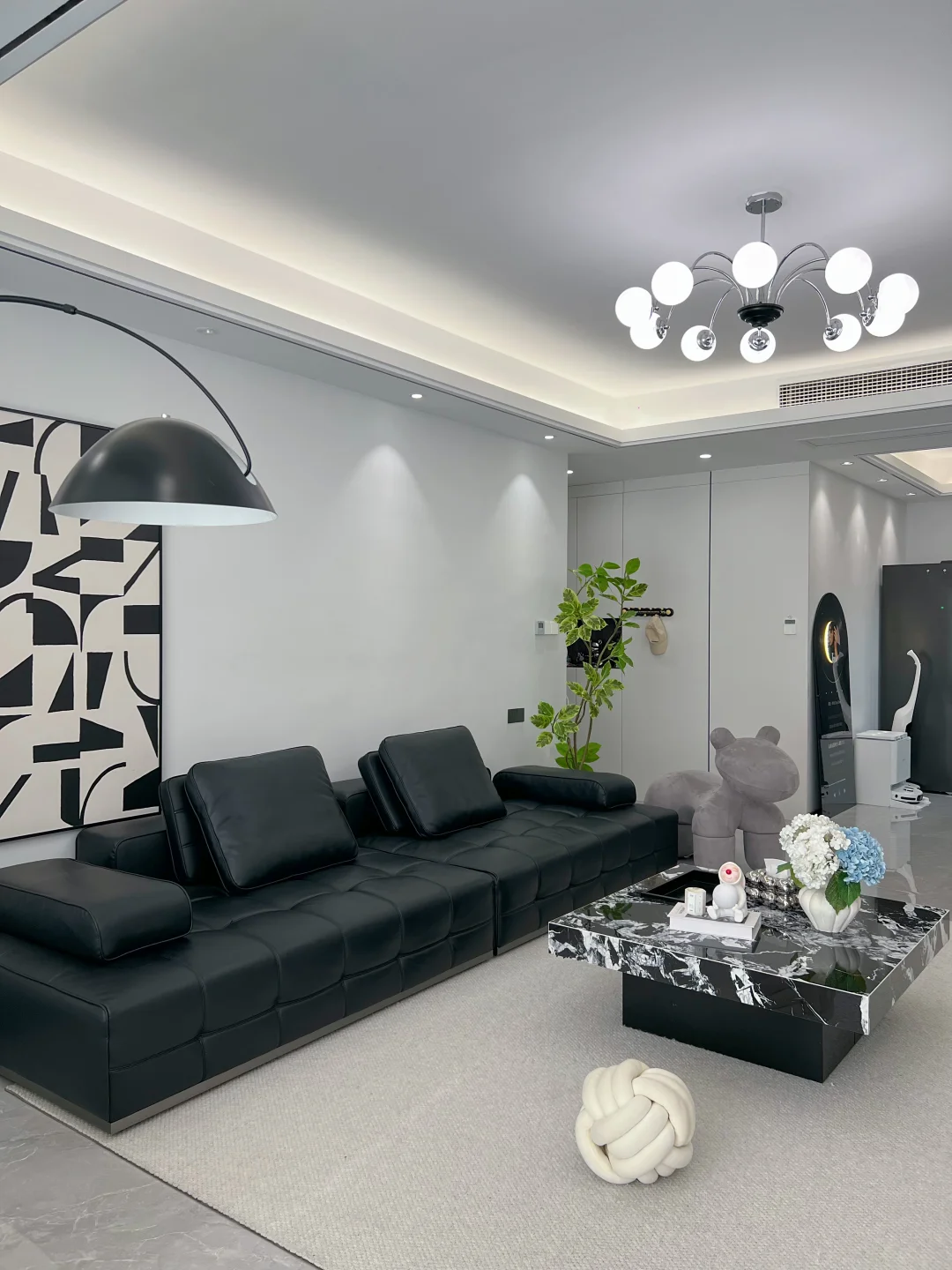 我家套内105平,三室两厅一厨两卫 分享全屋简单好抄作业的搭配思路: 【配色】70%灰色+20%白色+10%黑色,空间丰富有层次、不单一 【硬装】保留原始层高,做的回字形平吊,阳台没有做晾衣架,跟客厅相连,空间更显大 【软装】基本上都是和空间颜色相匹配,不会显得杂乱,也提升质感;黑色皮质沙发点亮空间