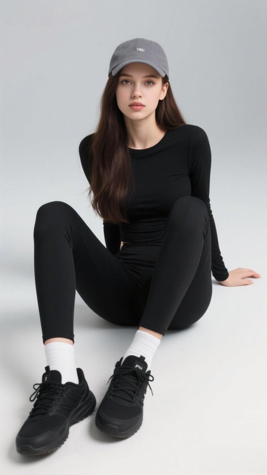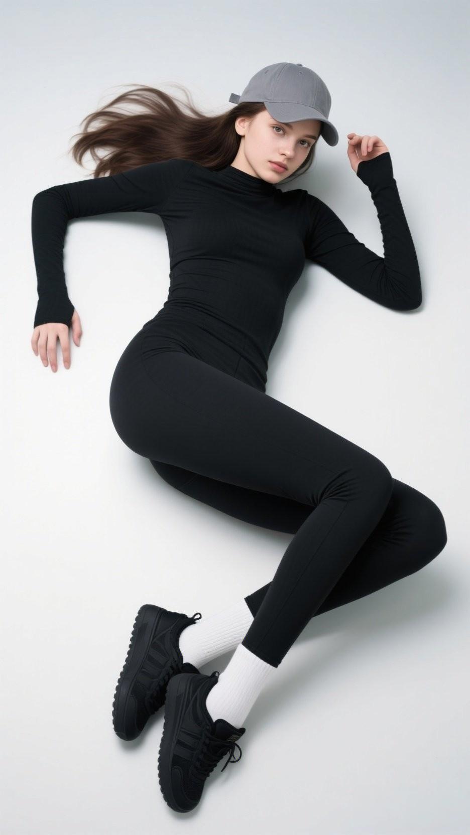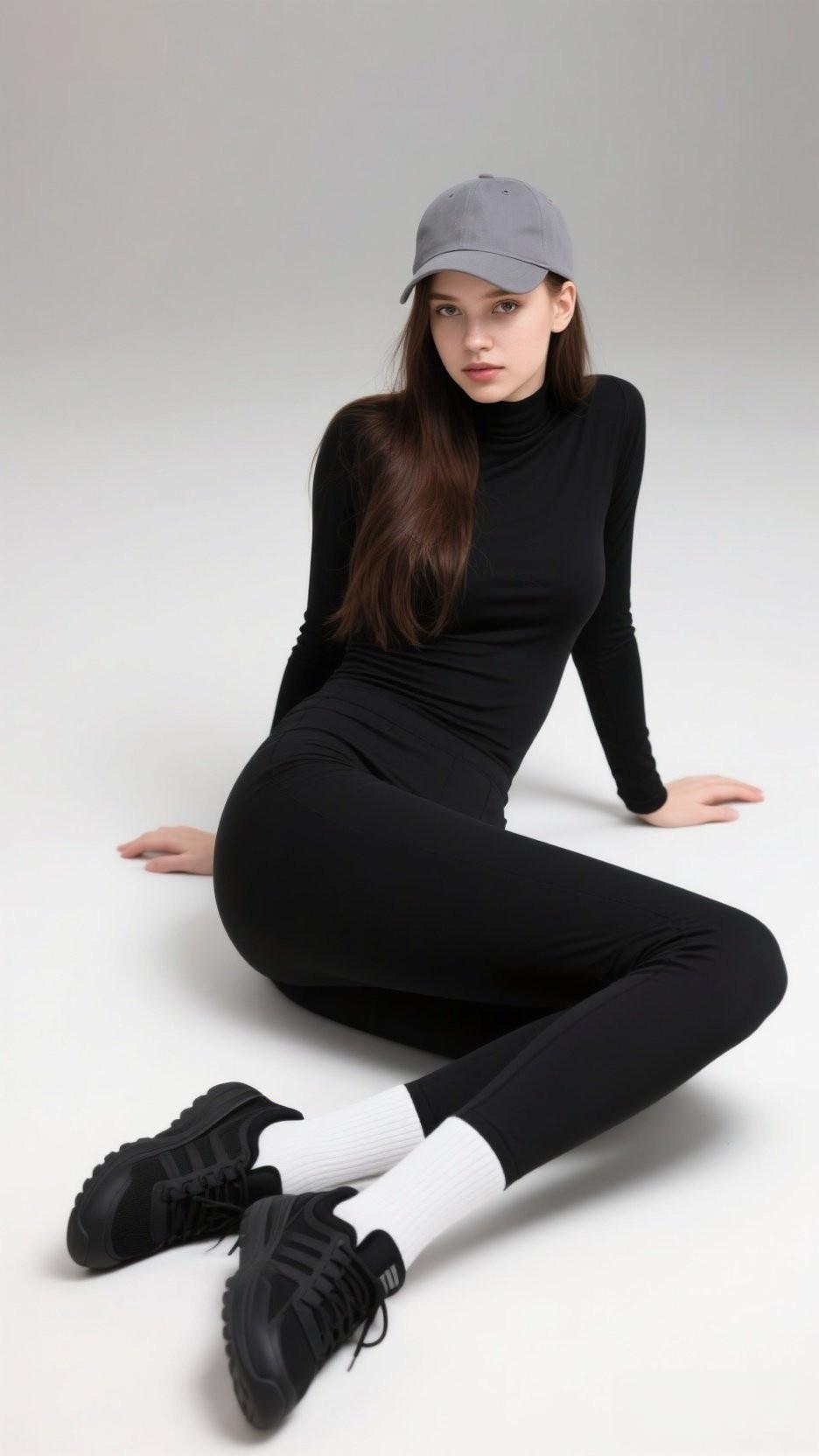时尚运动风,黑衣黑裤配白袜,活力满满!