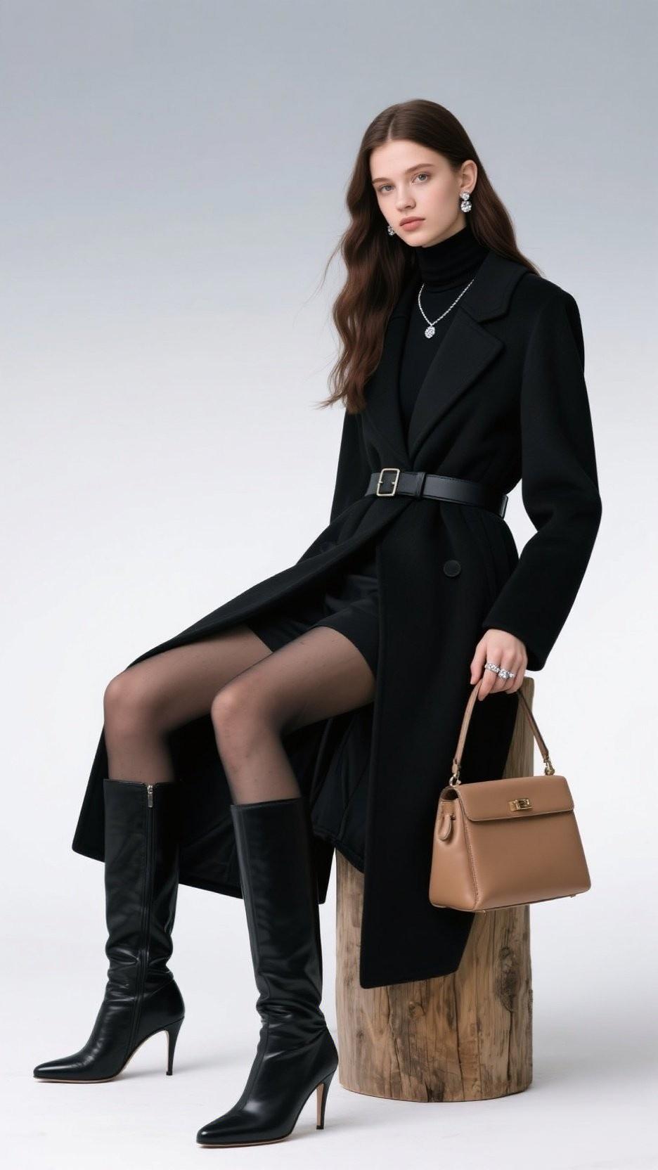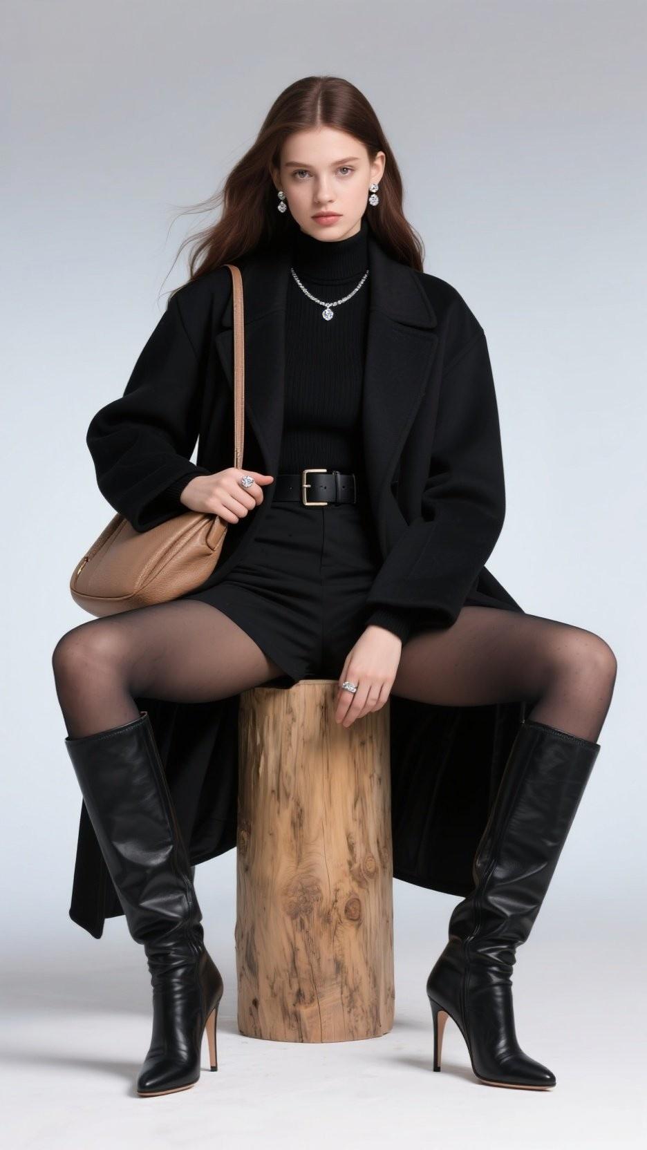 都市酷girl风穿搭,黑色大衣搭配高跟靴,时尚又帅气!女孩子怎么穿搭既时尚又好看? 女生怎样穿显得气质