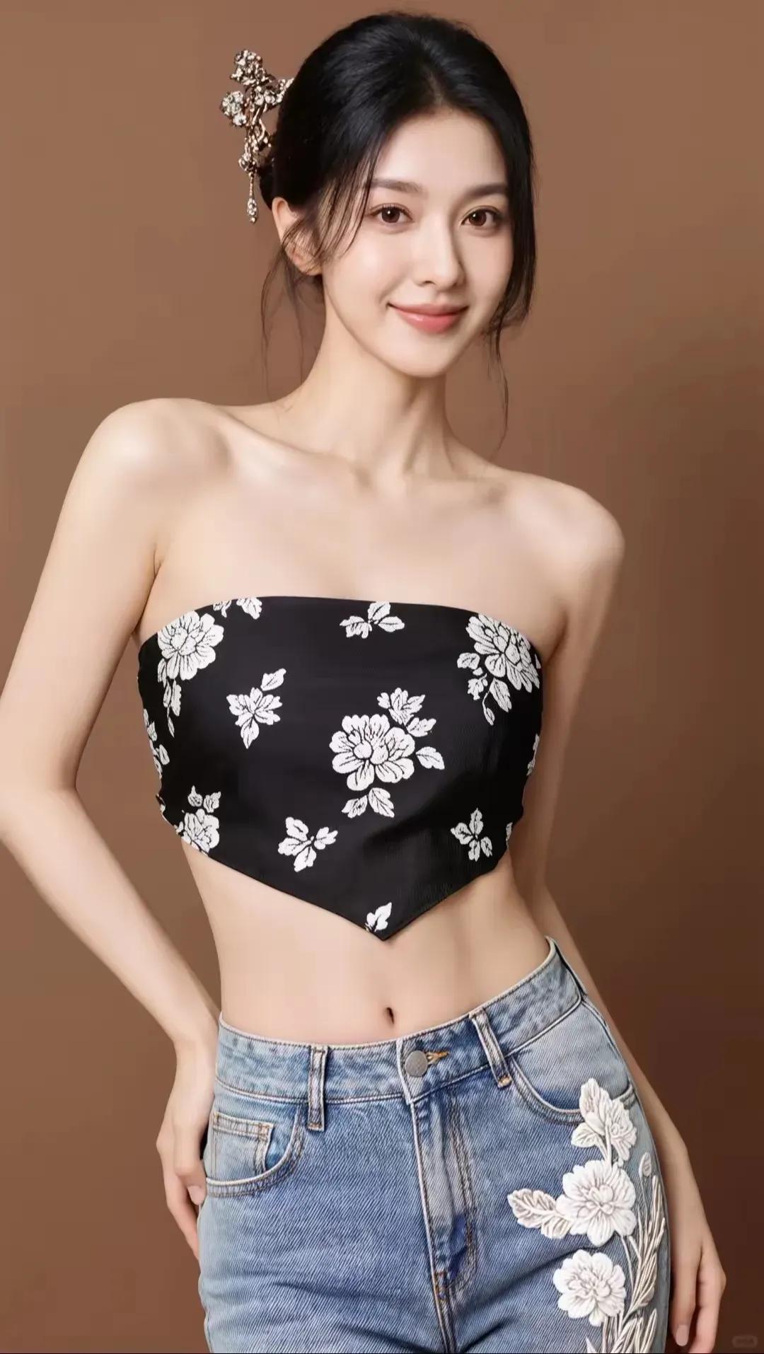 光之影 甜美少女风穿搭,花边露肩上衣搭配牛仔裤,清新自然!🌸👗👖