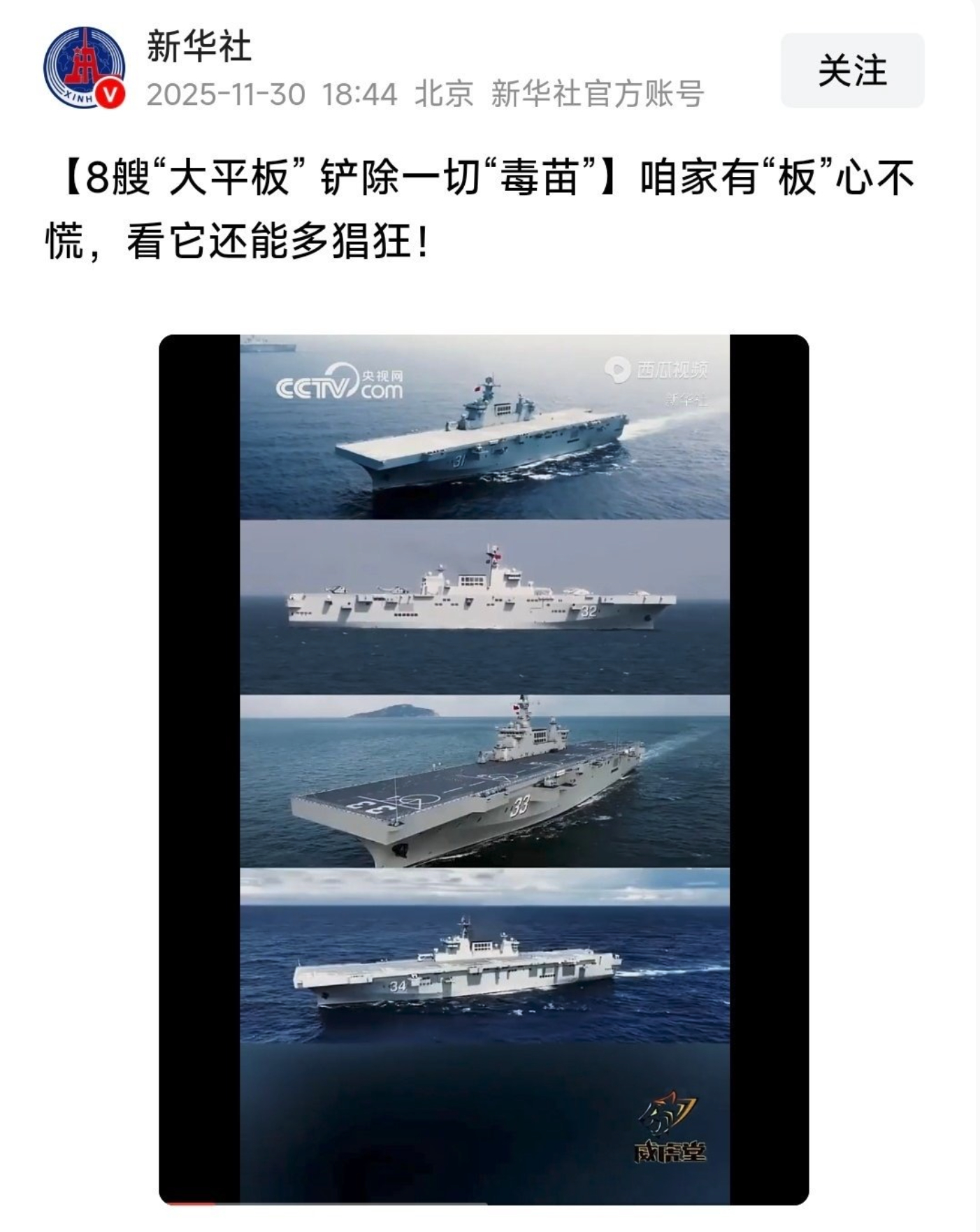 8艘“大平板”铲除一切“毒苗”!别看新华社短短几句话,但份量特别大,咱家有“板”心不慌,看它还能多猖狂!已经等不及看到日本灭亡的那天了。烽火问鼎计划