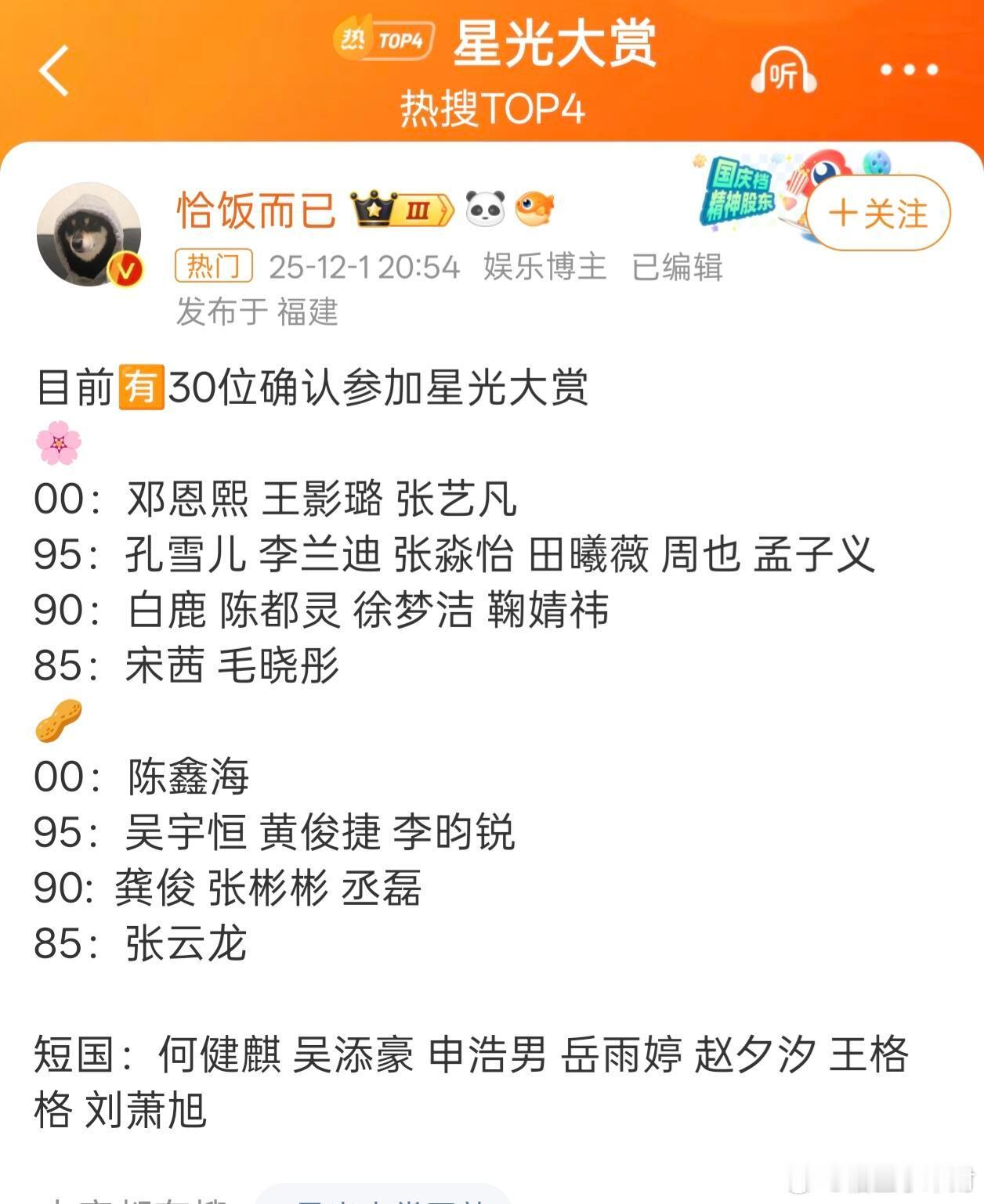 目前确定出席星光大赏的明星们,,目前全是小花小生
