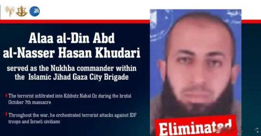 以军今天宣布,他们在加沙地带一次打击行动中,击毙了阿卜杜纳·赛尔哈桑·胡达里——他是伊斯兰圣战组织加沙城旅”“努赫巴”的一名指挥官。以军声称,这名武装分子曾参与2023年10月7日恐袭活动。巴以冲突中东军情加沙停火协议