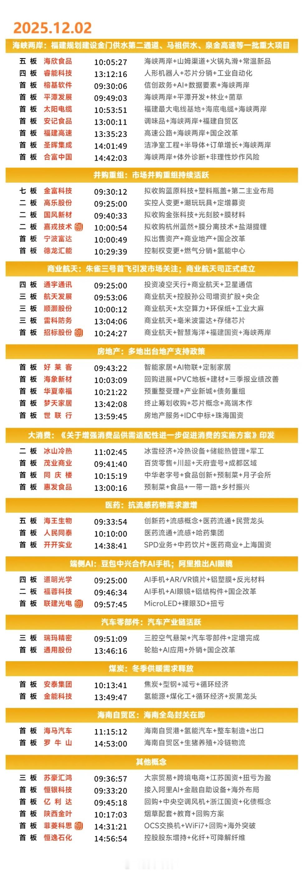 12月2日涨停复盘 | 福建板块逆势爆发,食品概念局部走强,商业航天概念表现活跃