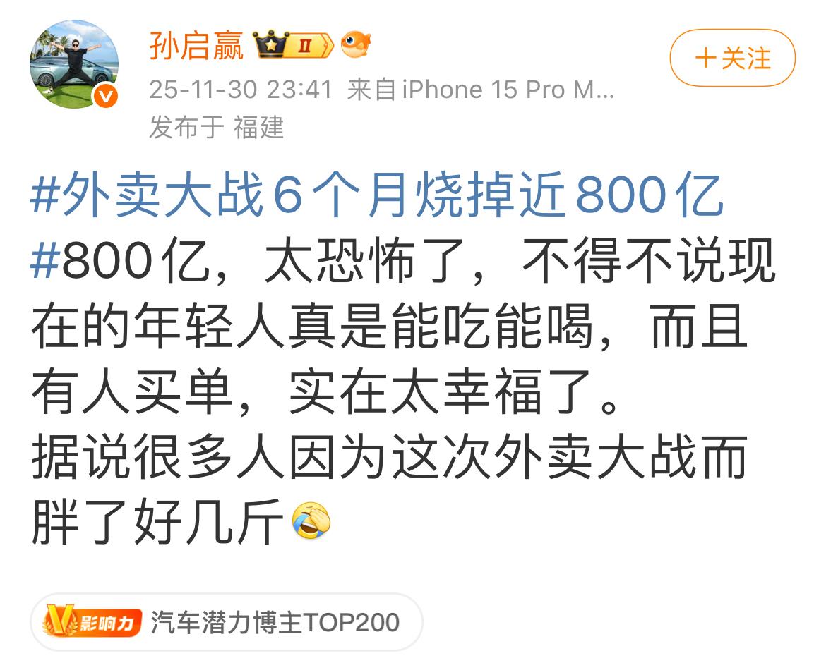 外卖大战,某团巨亏,竟然有愚蠢的人相信点外卖的年轻人占了便宜,很幸福。自古有一句话,买的没有卖的精,这一真理颠扑不破。平台真的烧了那么多钱吗?他们的财技是一般人能了解的,吃商家、吃消费者的生意能真金白银付出,鬼才信。至于说商家,虽然被平台压榨,但是他们不是白莲花,一定会在食材、餐盒等上面做文章。那些便宜到令人发紫的外卖,真的就是商家在亏本做慈善,做过餐饮生意就一定能明白里面的套路。