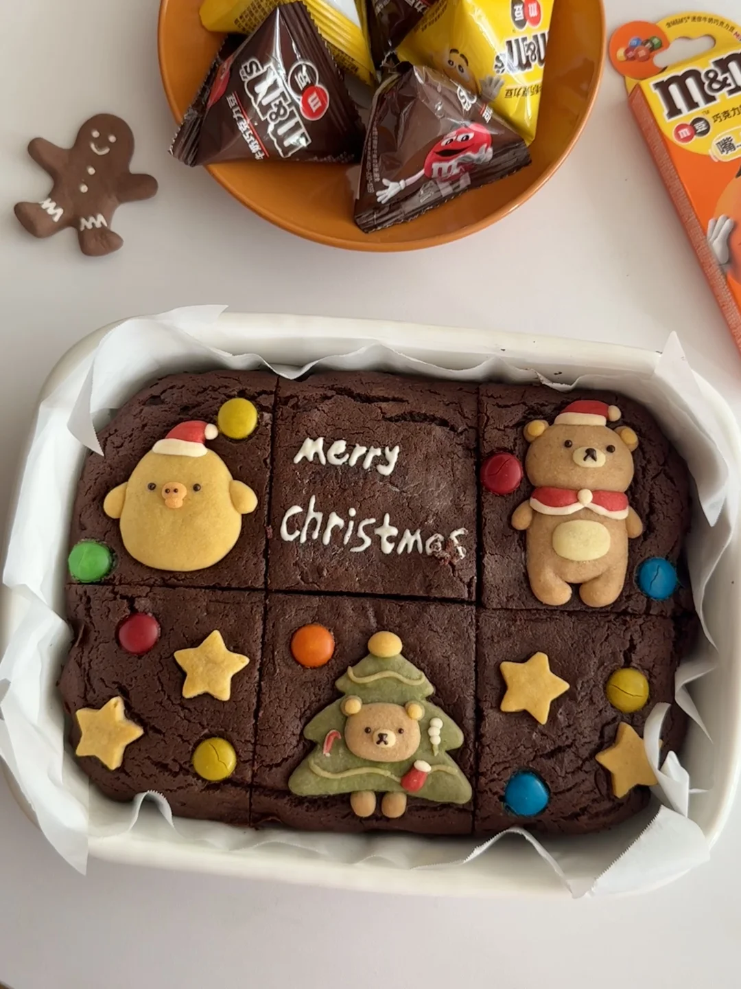 这么可爱的M豆圣诞巧克力布朗尼到底是谁在吃啊~
