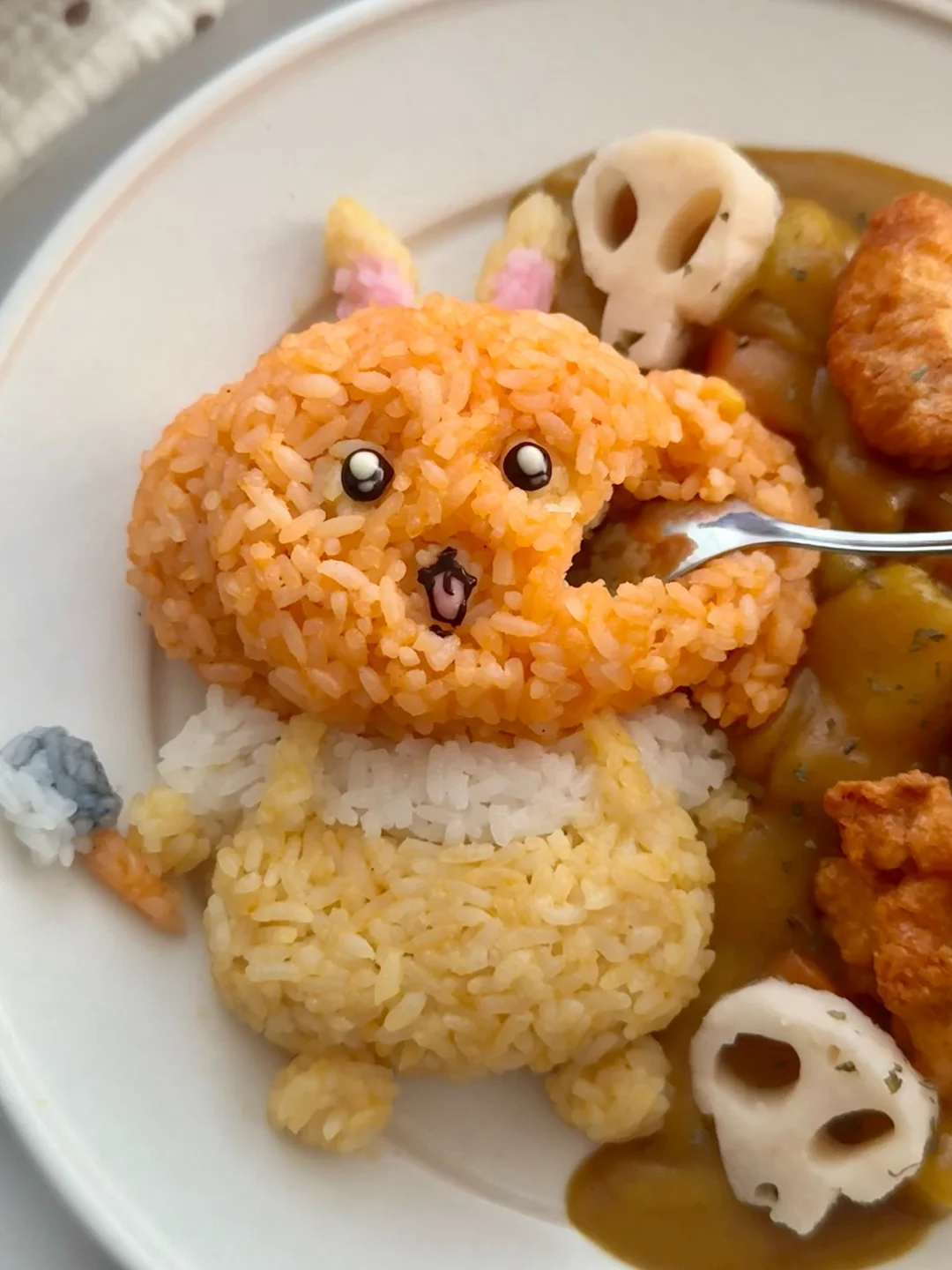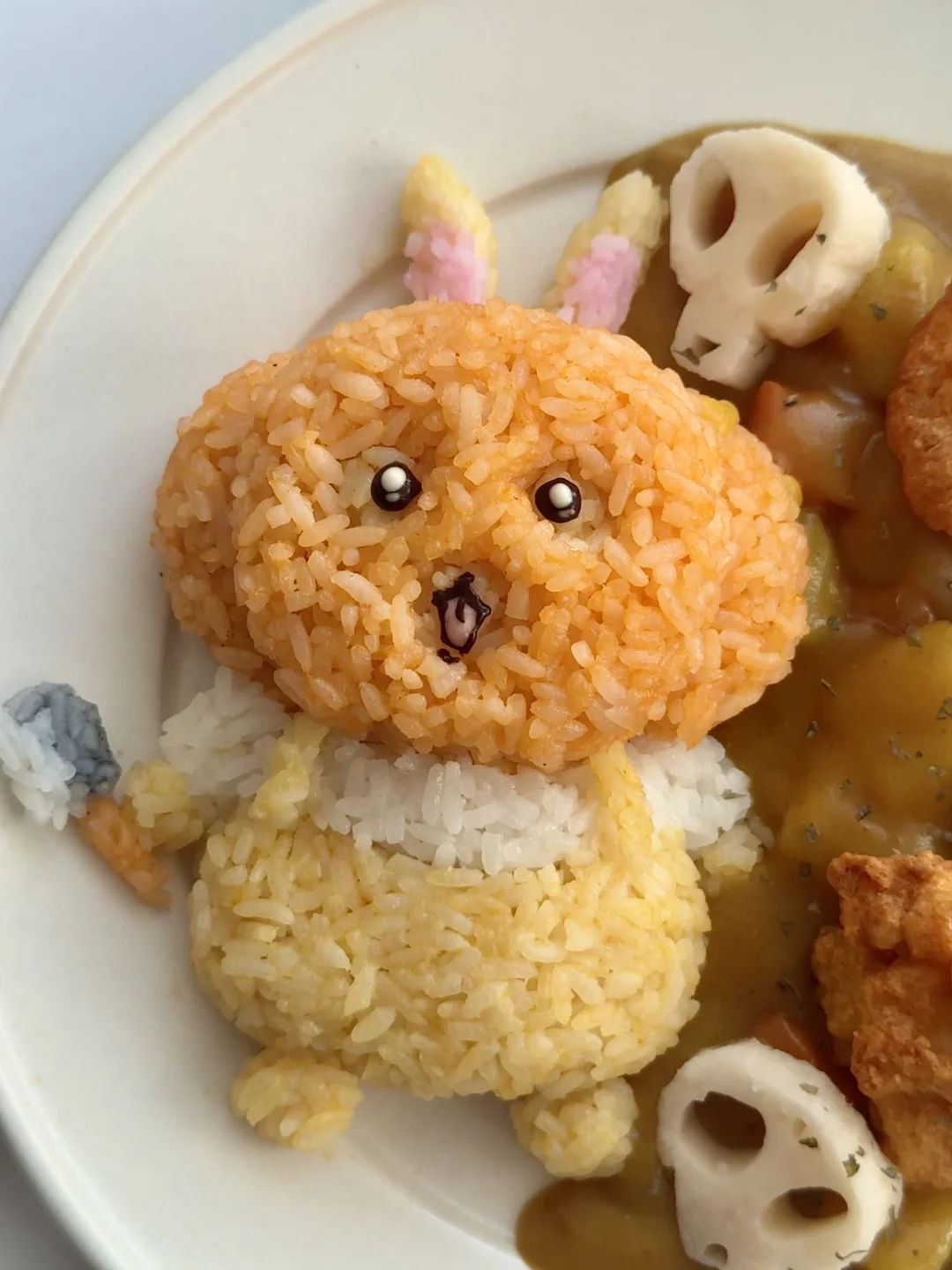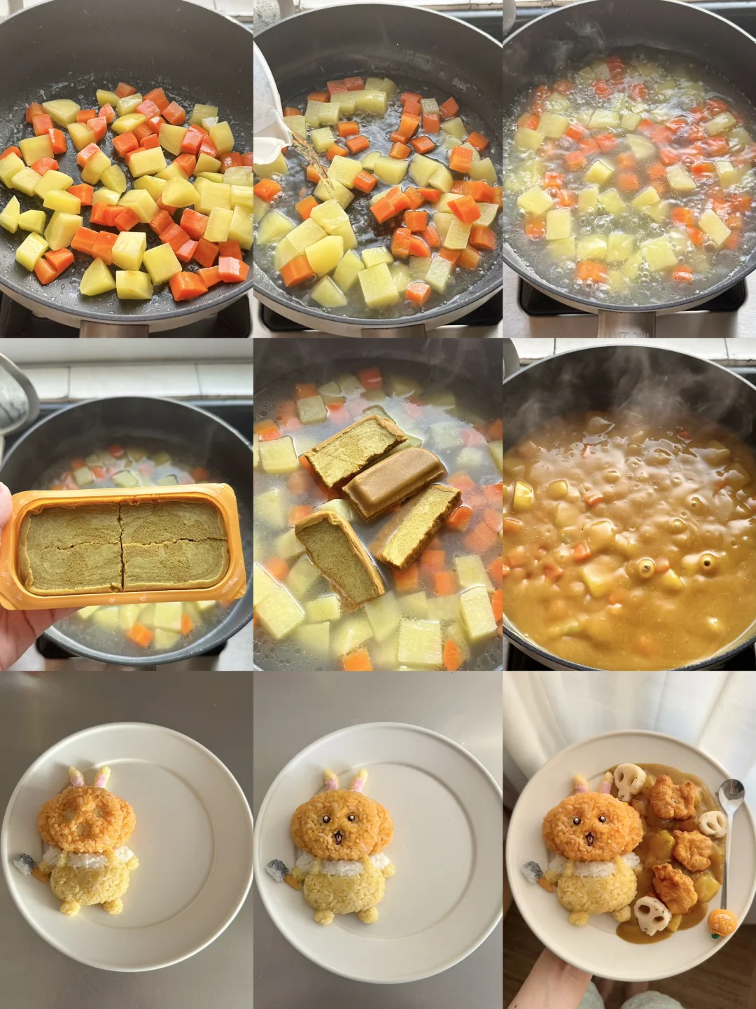 4️⃣淋上煮好的咖喱,摆上鸡块和骷髅莲藕就完成啦!