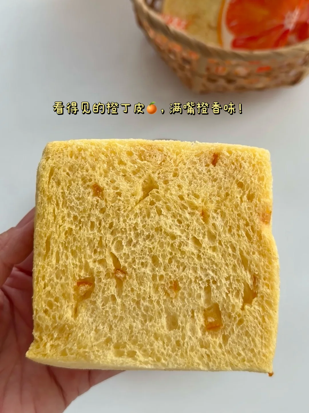 用纯牛奶做出来的吐司奶香味真的特别浓郁,面包体吃起来软fufu的,里面还添加了天然的橙丁皮,入口先是面包的麦香味,接着就是橙子的清甜,吃完连呼吸都是满满的橙香味🍊