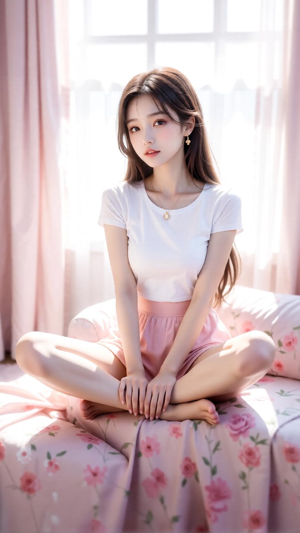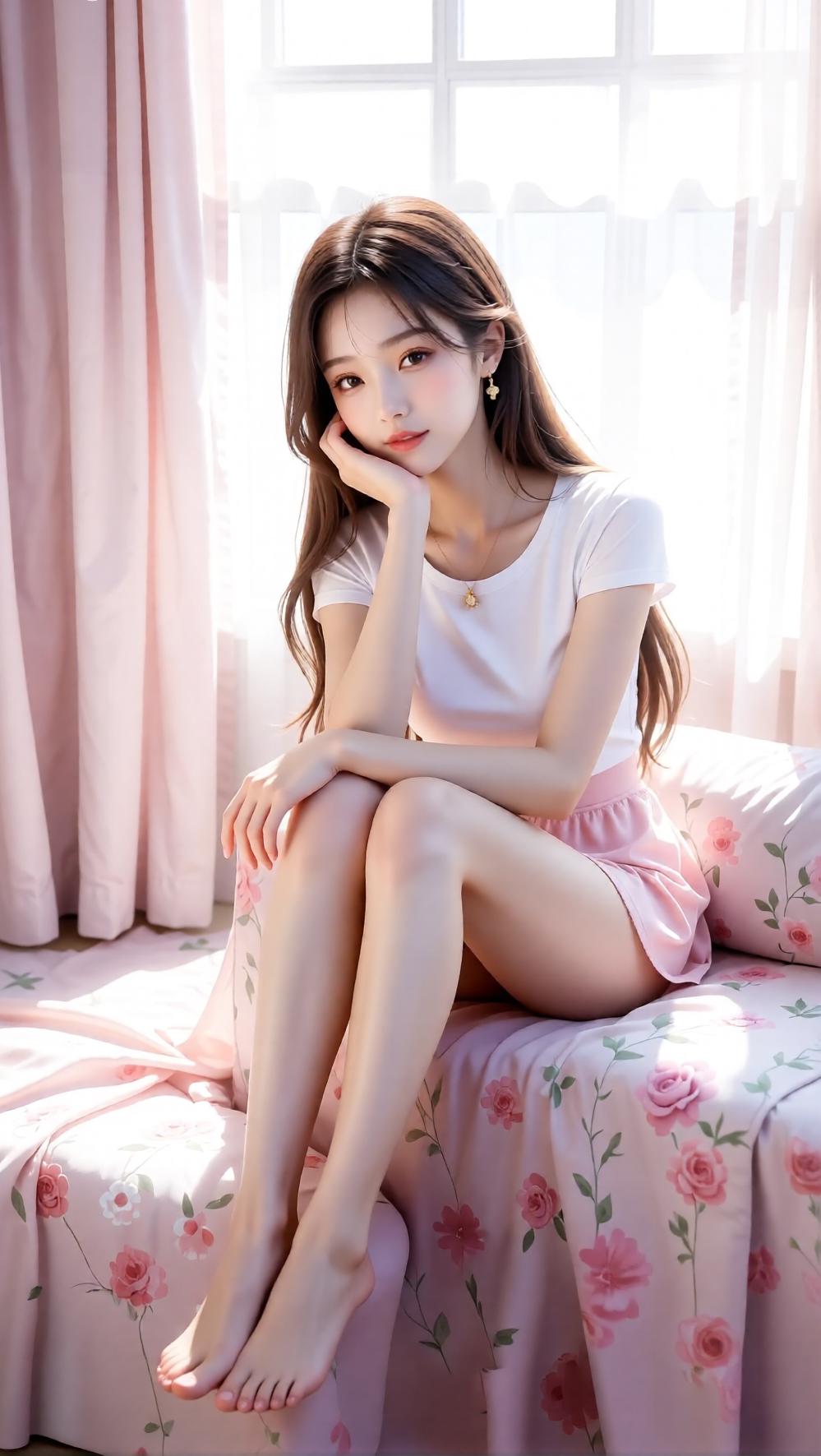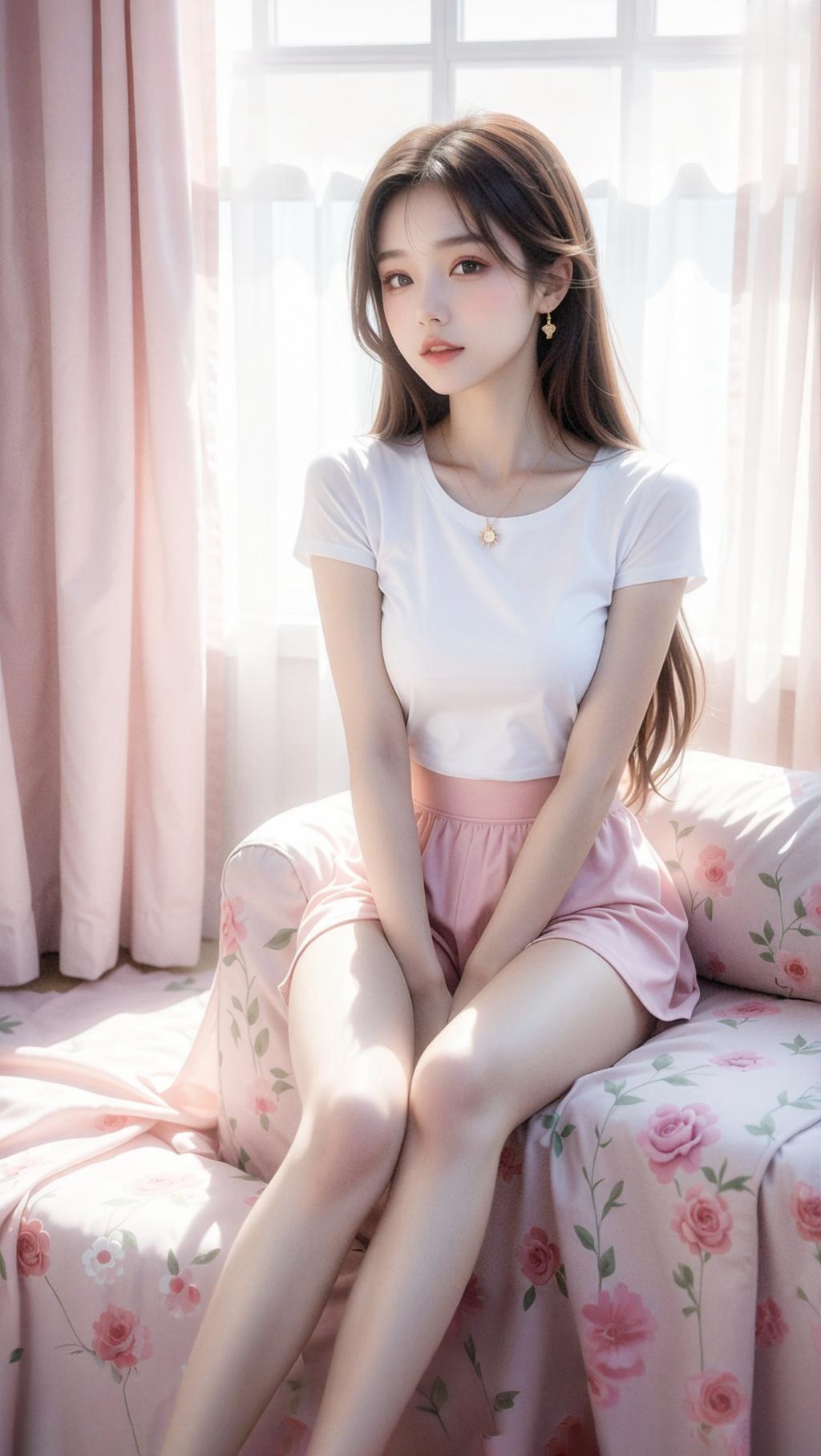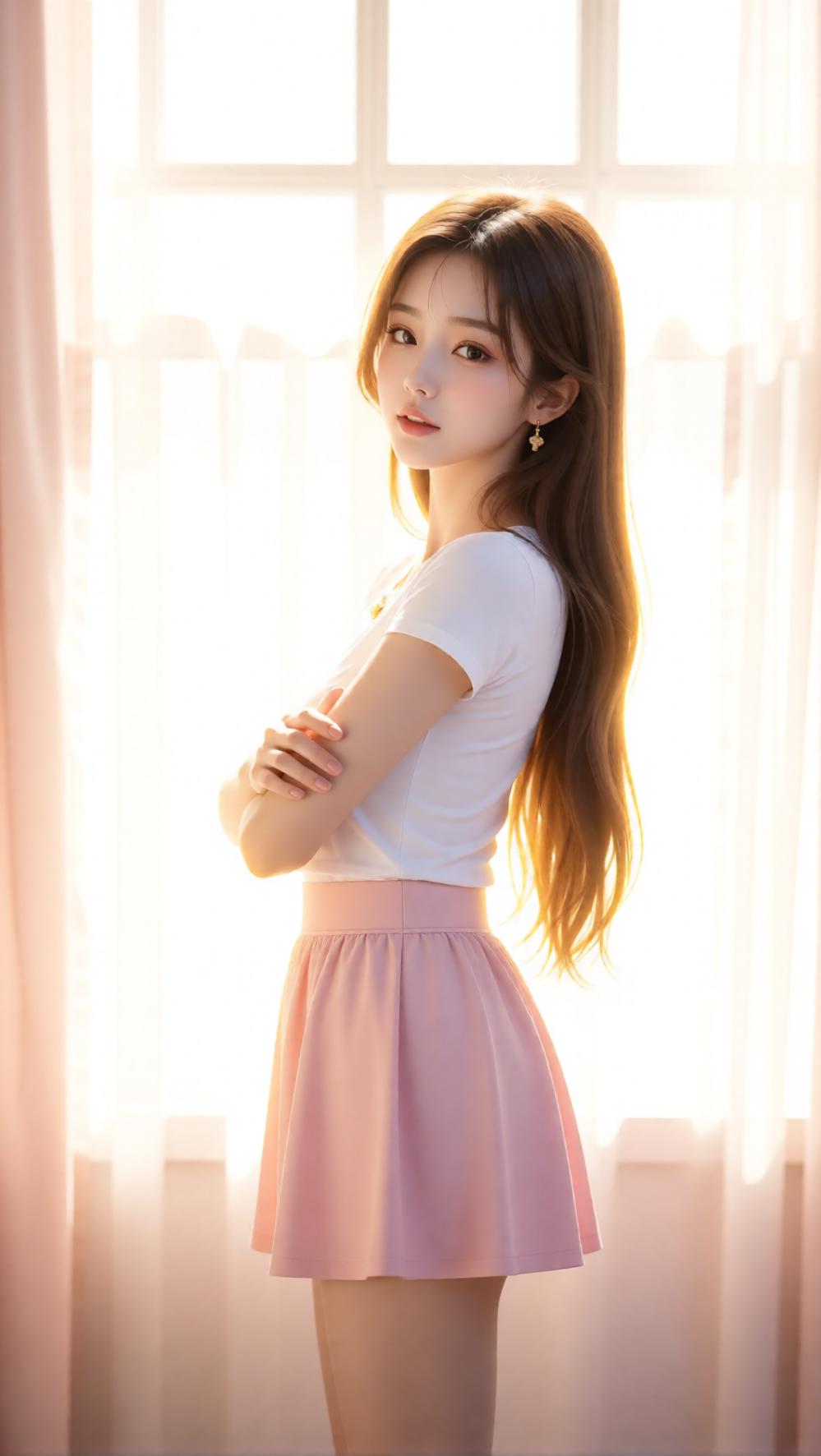少女心满满,粉色裙摆随风飘动,阳光洒进来的瞬间,温柔至极。