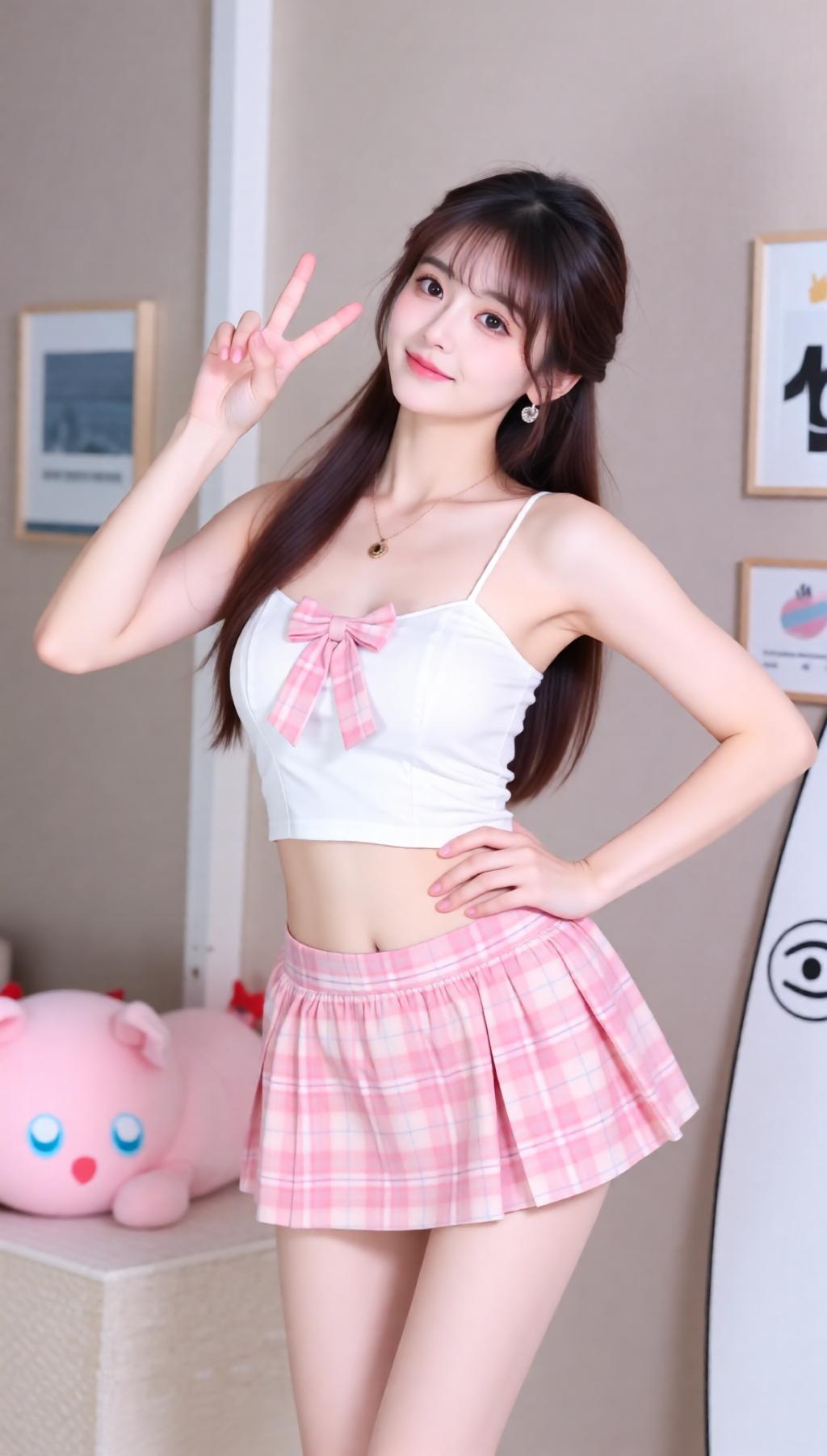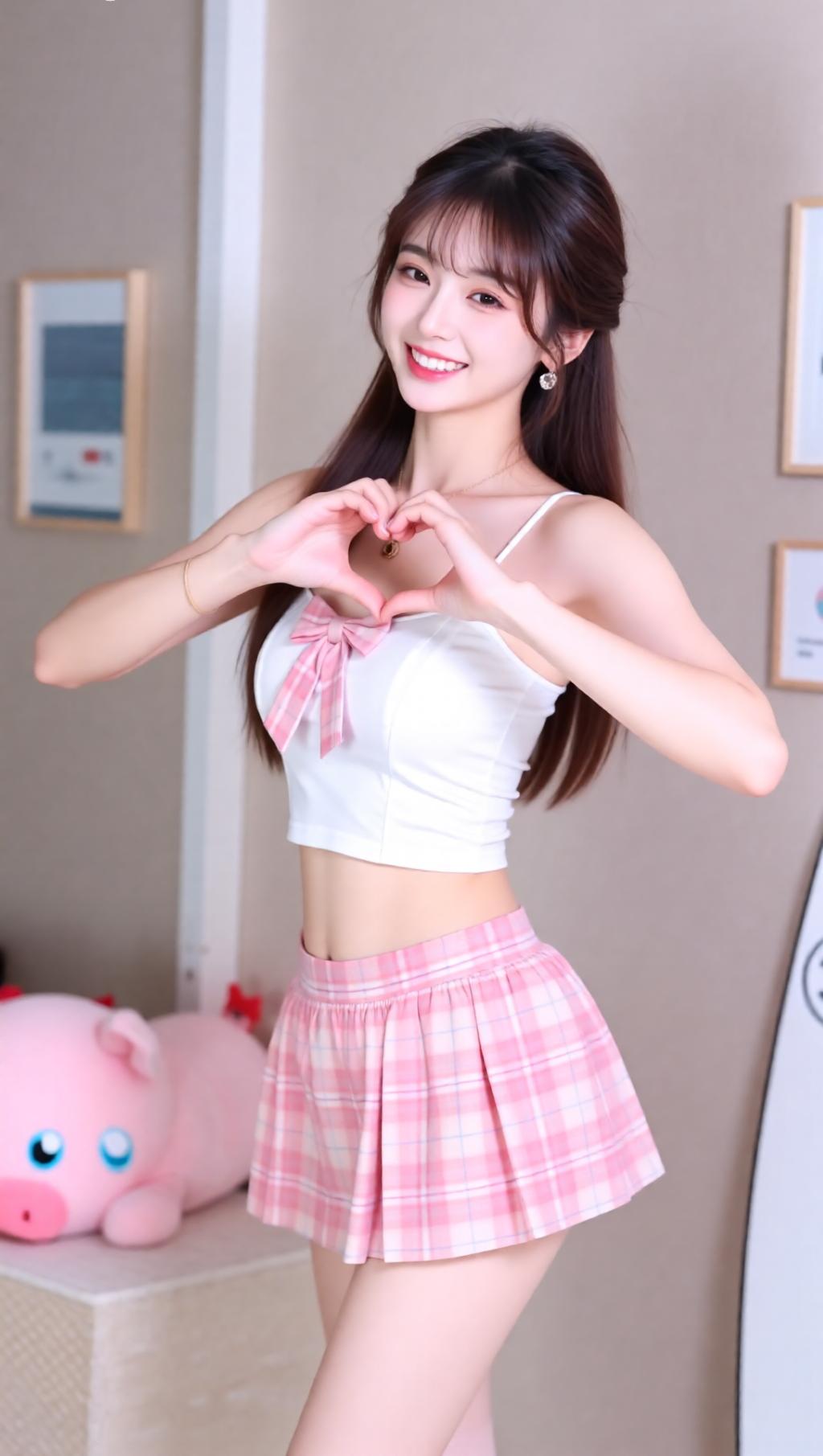 甜美少女风穿搭,粉色猪猪抱枕,可爱满分!