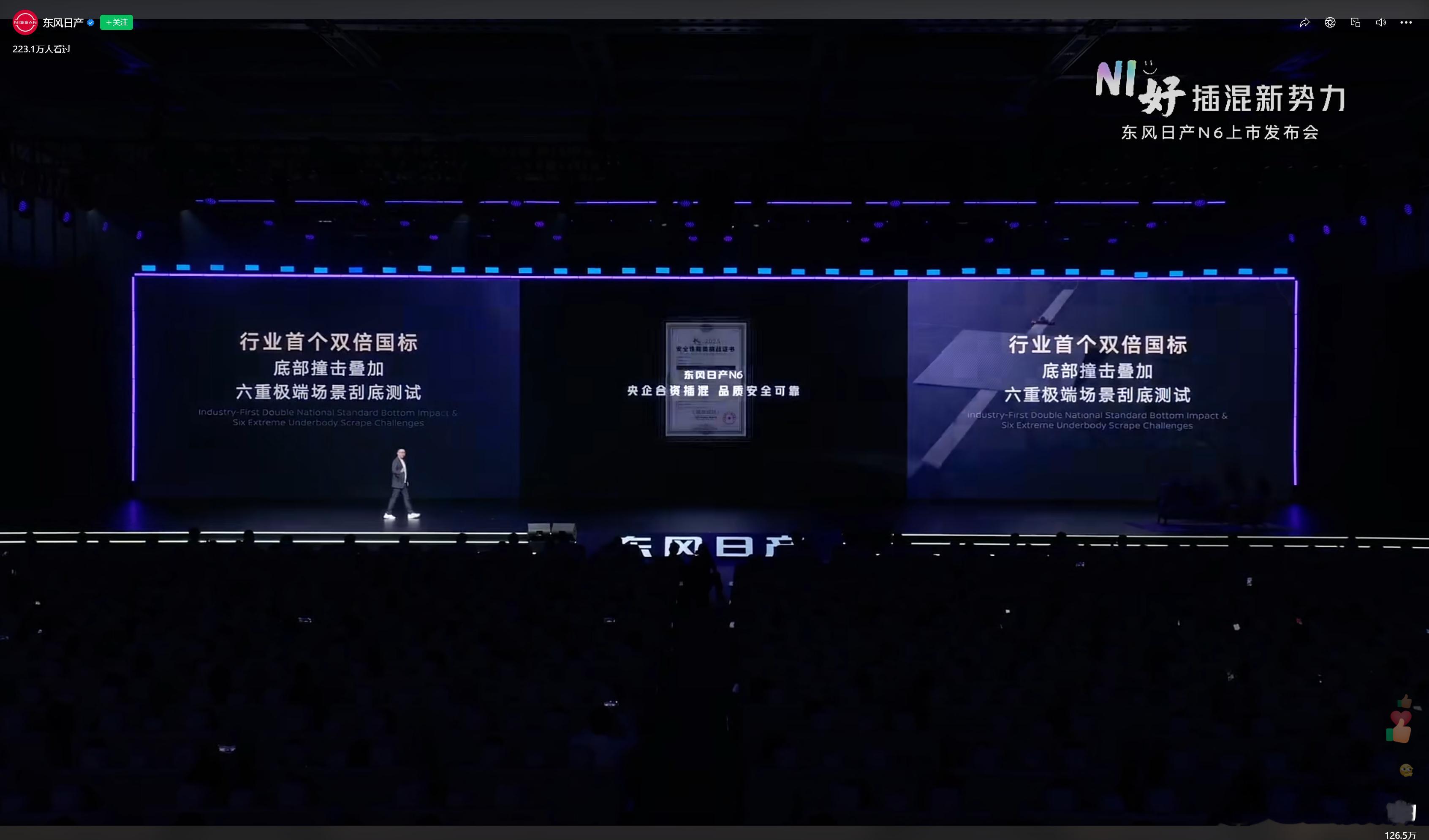 东风日产N6 昨天东风日产N6的价格一出,真的是把国内10万级新能源市场给搅了起来。国羽证言央企合资品质N6这次发布国羽世界冠军梁伟铿、王昶亲临现场, 和东风日产完成了合作签约。大电池超舒适插混N6售9.19万起东风日产N6这场发布会,给我印象最深的就是有几项安全测试,包括电池安全极限挑战实测,完成了行业首个双倍国标的底部撞击叠加测试,还有整车碰撞测试,直接来了个30米垂直高度高陡坡侧碰翻滚测试,真是太敢了。完全颠覆了我对日系合资品牌以往的认知。东风日产N6不愧是“央企合资好插混”。