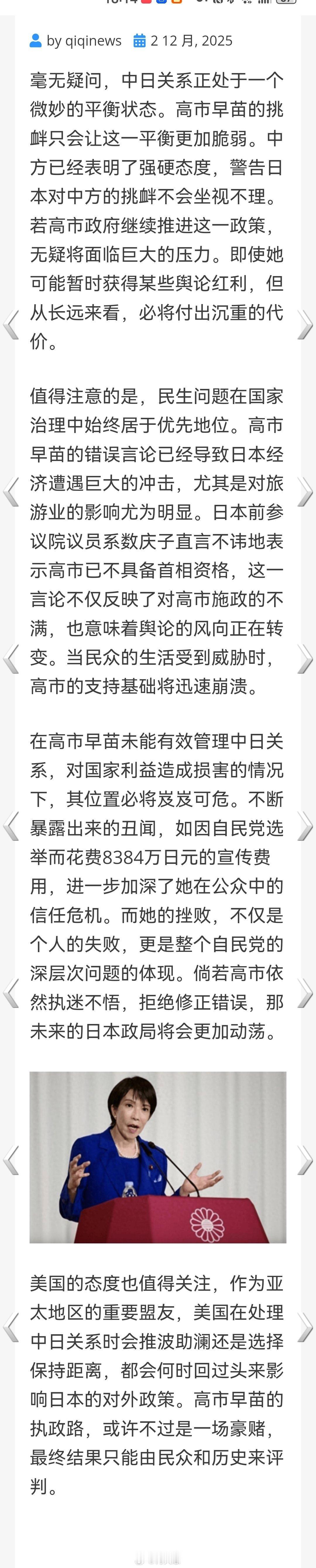 高市早苗兵行险招,重提钓鱼岛归属权,日本女首相已经陷入下台危机! 中方回应日本团体请求访华海外新鲜事何天恩