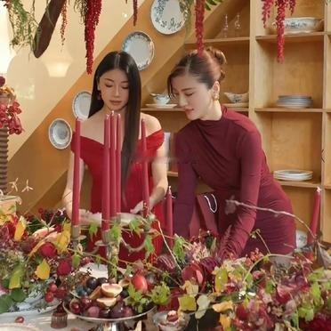 吴千语和闺蜜程晓玥合体开派对,两人请了几位好友一起,现场布置得很有圣诞氛围感。挺着大肚子的程晓玥还穿着晚礼服,做孕妈妈也是相当优雅。
