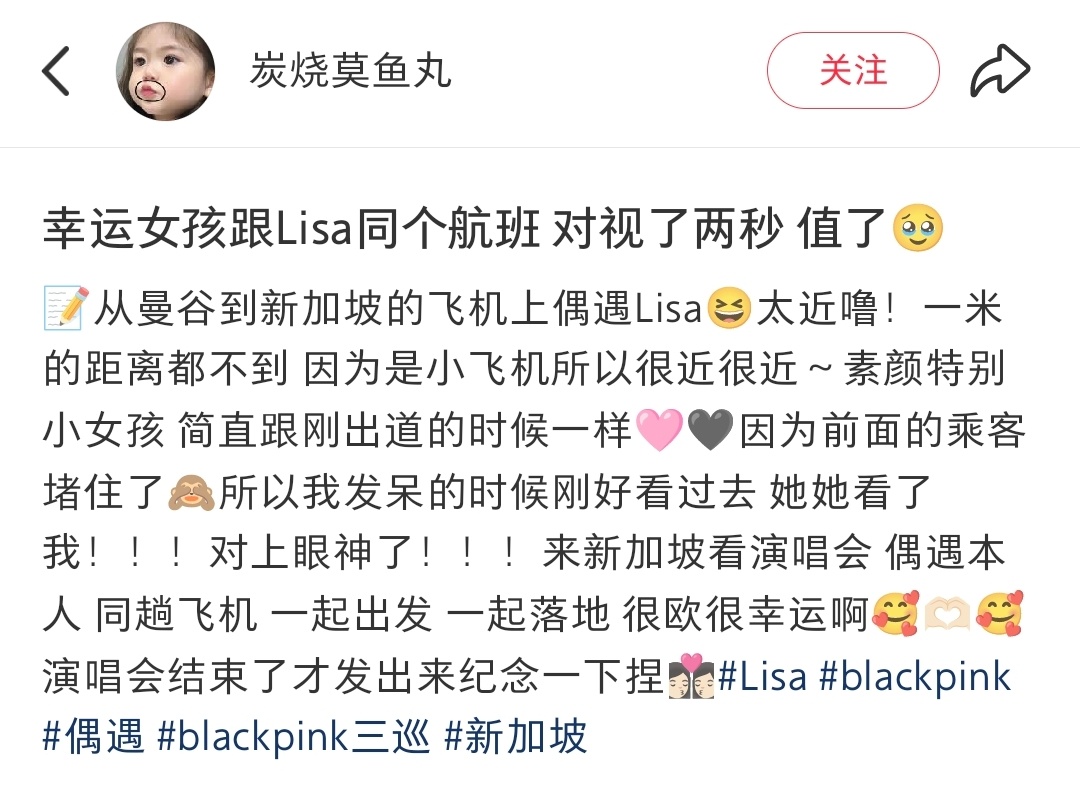 网友偶遇Lisa(新加坡演唱会之前)“素颜特别小女孩,简直跟刚出道的时候一样🩷🖤”怎么这么萌😚😚Cr.logo