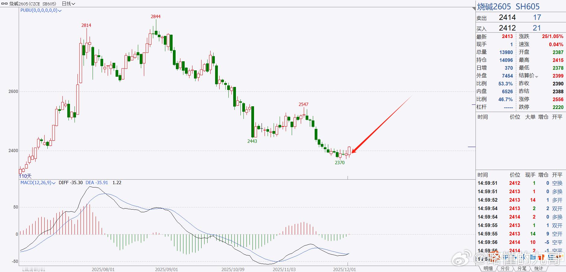 期货 注意烧碱,烧碱的05合约,目前图形表现非常不错!需要重点注意的点位是2440,这个位置,很有可能会走出行情!烧碱期货烧碱