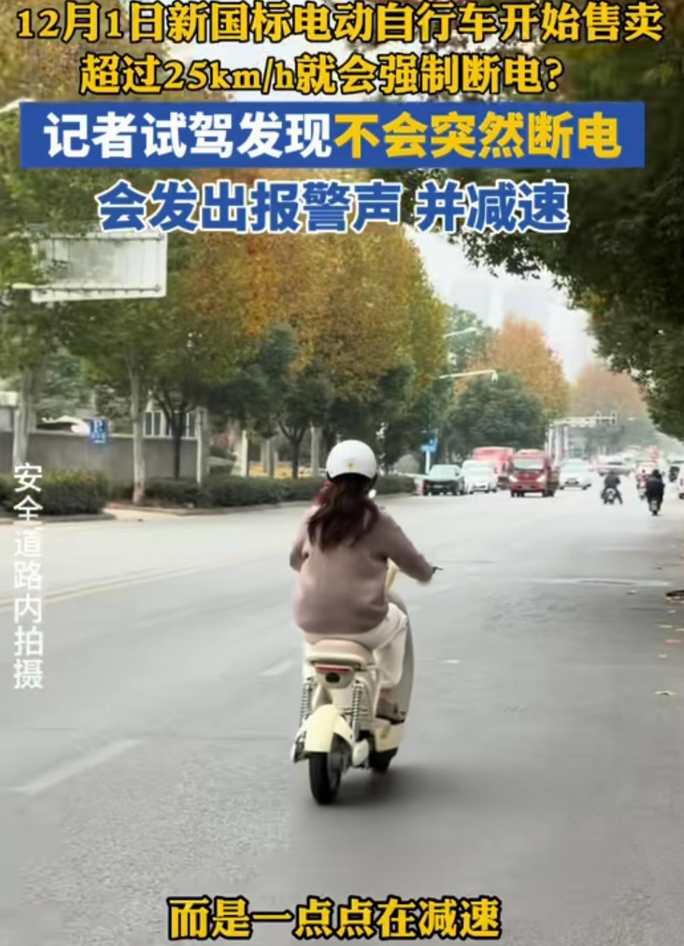 新国标电动自行车实测了! 新车车架采用了更多的金属材质 最高时速不超过25公里/时 在接近这个速度时也不会自动断电 而是发出警报声,慢慢自动减速 有脚踏,没有后视镜 没有转向灯,没有可以载人的后座 那么问题来了 头盔往哪放,雨披往哪放 充电器往哪放,孩子往哪放 市面售价每辆4千 对普通老百姓来说不便宜 不能接送孩子,家庭不会选择 送外卖快递,速度不够 外卖员不会选择 老人清洁工人干活,不能放工具 也不会选择 上市遇冷,显而易见 安全是有了,可是不实用! 电动自行车新标 电动自行车国标