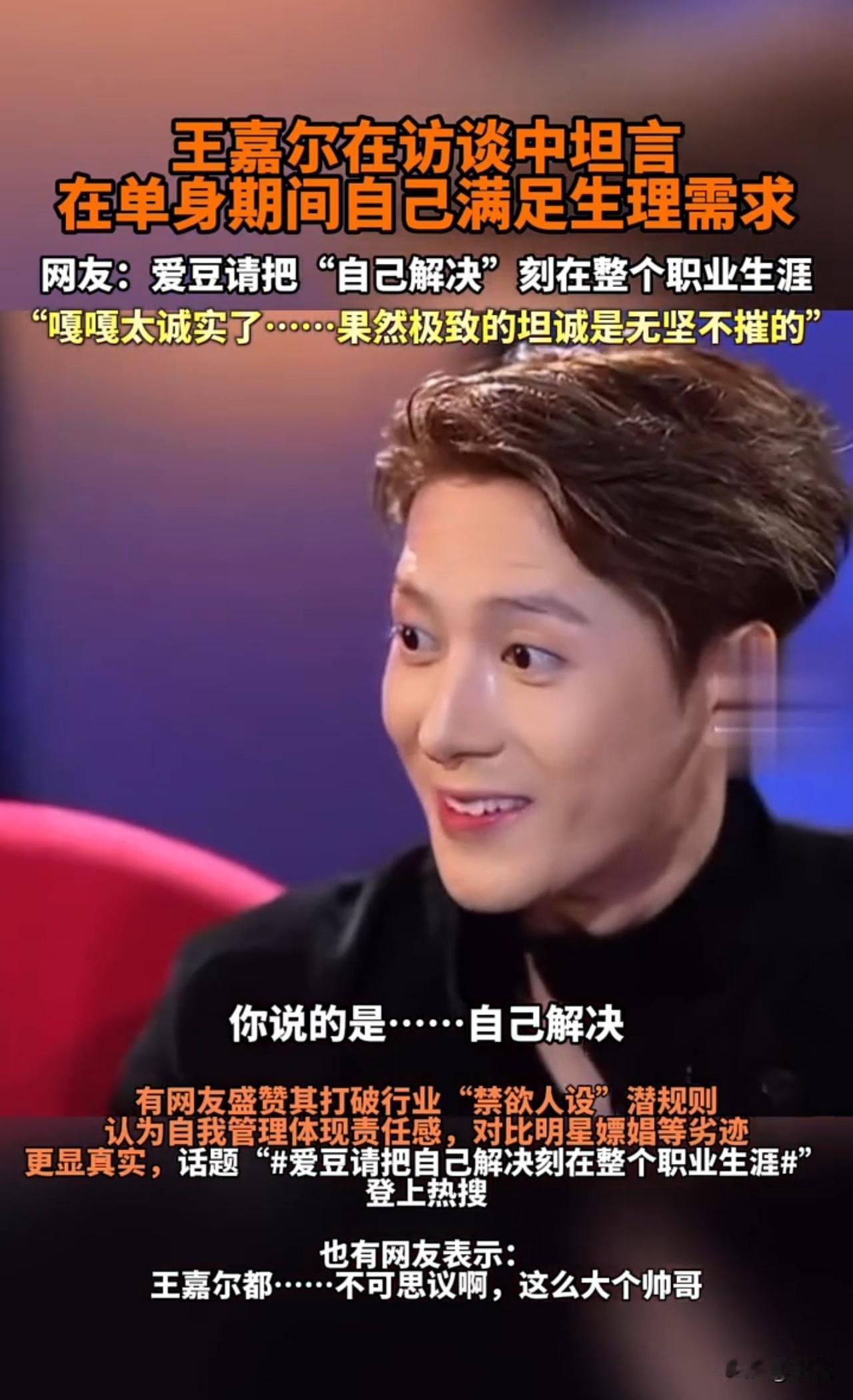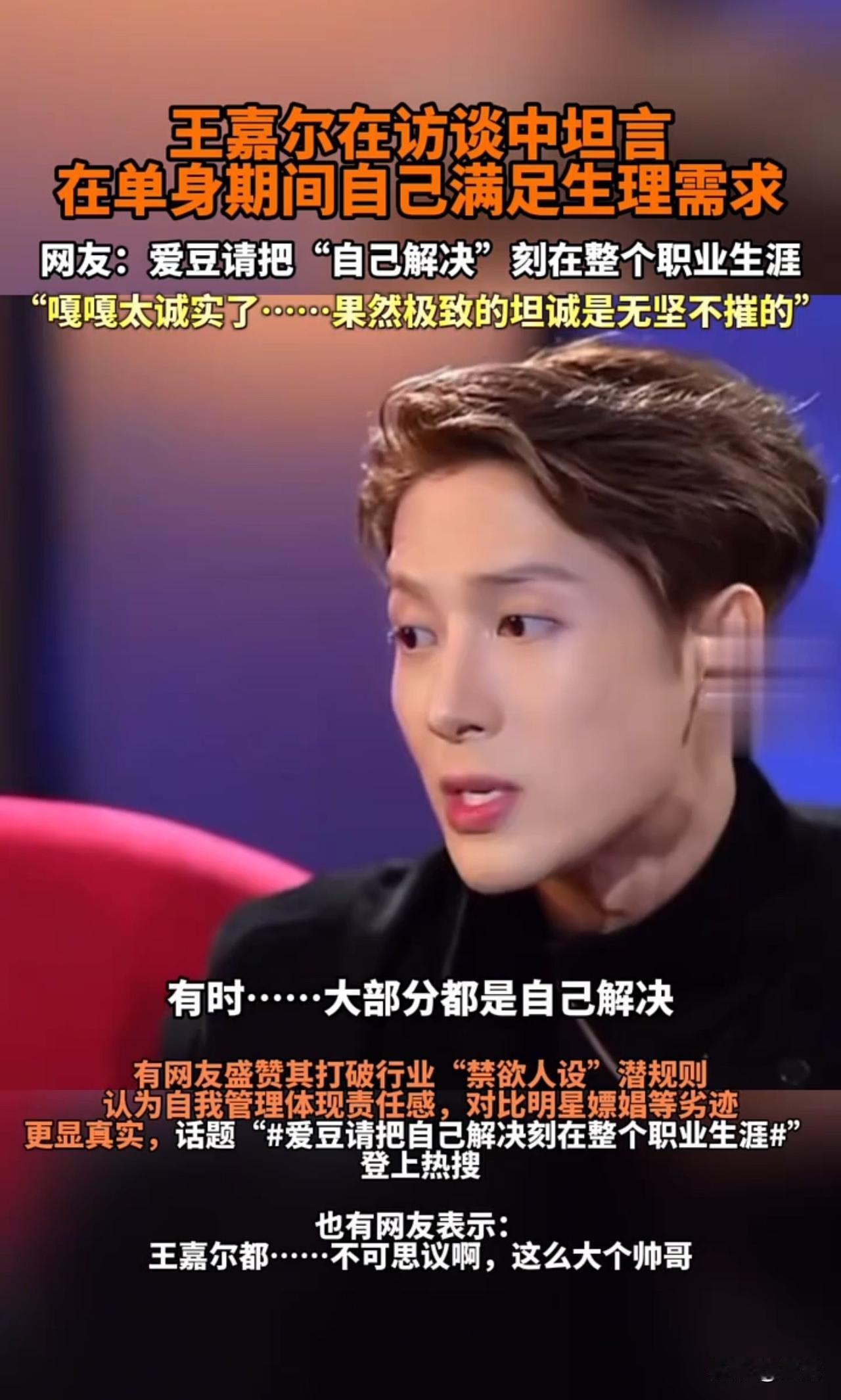 顶流明星王嘉尔自曝解决生理需求方式 来聊一聊韩国男团GOT7成员 香港籍艺人王嘉尔的新闻 作为圈内知名的“夜店王子” 王嘉尔最近被采访问到 有没有交朋友 王嘉尔回答令人惊讶 语出惊人的他可是上海夜店的常客 据了解,他几乎是上海各大高端夜店的常客 经常戴着棒球帽、穿三叶草卫衣现身 身边美女如云,狂欢蹦迪到天亮 王嘉尔才华横溢,音乐时尚双开花 圈内水太深 其中不是大众所能参悟的[呲牙]