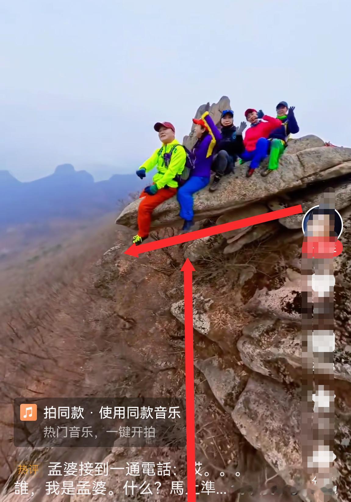 大妈们悠着点!一块石头伸出悬崖,几个大妈“骑”在上面,还兴高采烈摇摆着,下面就是悬崖峭壁,如果石块失去重心,掉落下去,可能无完人了。真的应一句话:粉骨碎身浑不怕,要留照片在人间。