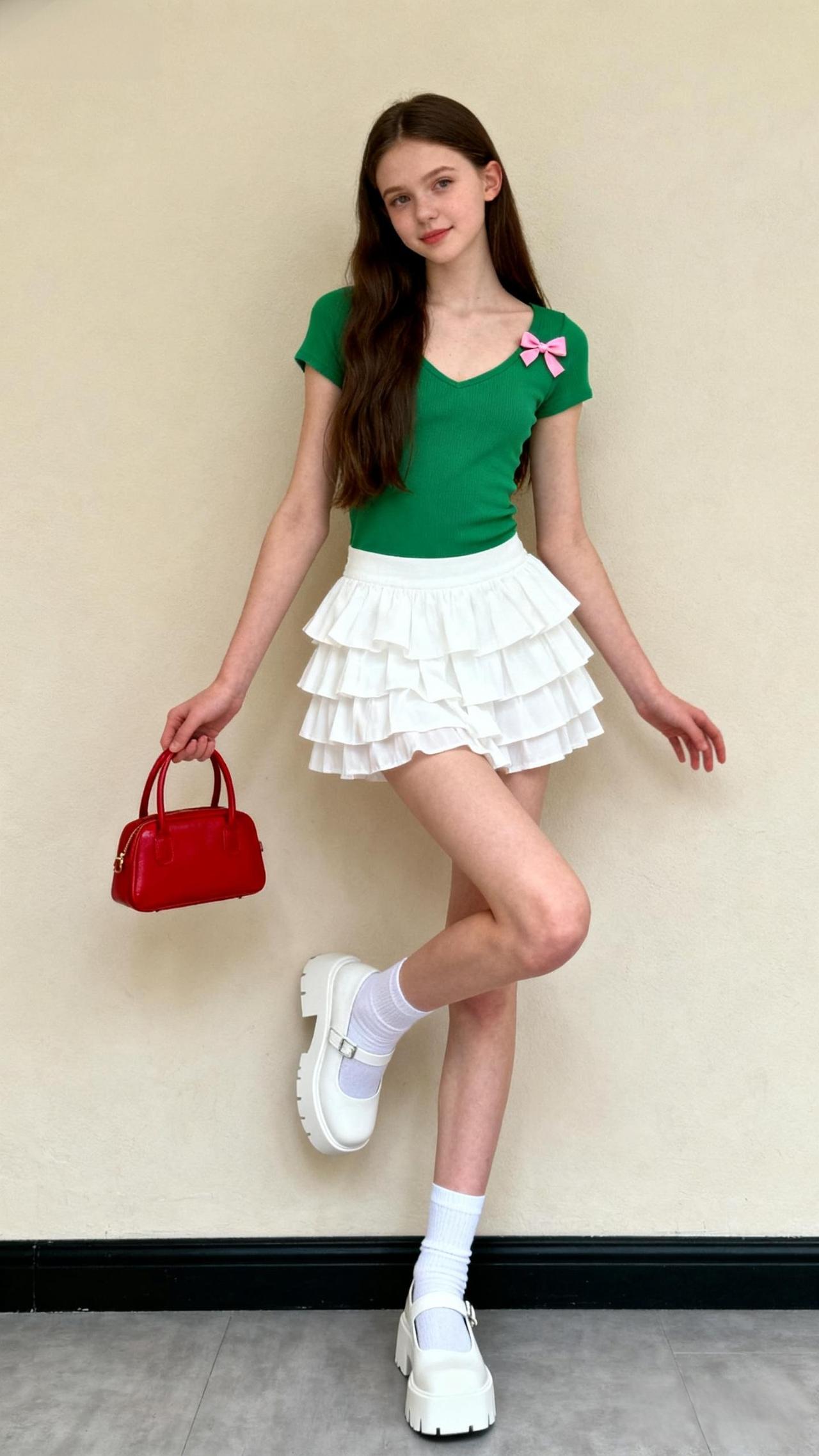 少女心爆棚的绿色T恤配白色百褶裙,这搭配简直甜到冒泡!白色百褶裙就是夏日减龄神器,清新干净,自带初恋感。绿色T恤活力满满,和白色百褶裙搭在一起,就是甜妹标配。 今年运动风穿搭超火,不过百褶裙这种甜美风也毫不逊色。像紫色、蓝色Polo衫搭百褶裙能营造校园青春感,粉色针织短上衣配它也是温柔浪漫。但绿色T恤配白色百褶裙,更有独特的清新感,穿上它出门,感觉自己就是元气少女本女,回头率绝对爆表! 有哪些好看的仙的裙子穿搭推荐